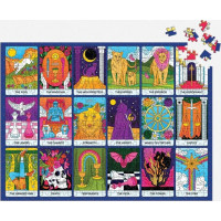 Obojstranné puzzle zobrazuje tarotové karty, ktoré predstavujú životné lekcie a témy. Dieliky puzzle sú na jednej strane matné a na druhej lesklé pre ľahšie skladanie. Puzzle je balené v pevnej krabici, na opätovné použitie a skladovanie. Ideálne ako darček. Autor obrázku je Michelle Berlin.