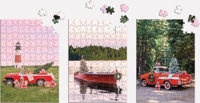 Gray Malin The Holiday 3-In-1 Puzzle Set od Galisonu obsahuje tri 120-dielne puzzle s tromi Grayovými najpredávanejšími leteckými snímkami. Puzzle Gray Malin sú ideálnym darčekom pre milovníkov puzzle aj výtvarnej fotografie. Puzzle Galison sú balené v matných pevných krabičkách, ktoré sú ideálne ako darčeky. - Vonkajšia strana krabičky s magnetickým uzáverom. - Tri vnútorné krabičky na puzzle: 70 x 95 x 25 mm - Tri puzzle každé po 120 dielikov Rozmer zloženého puzzle cca 14,2 x 21 cmVlastnosti