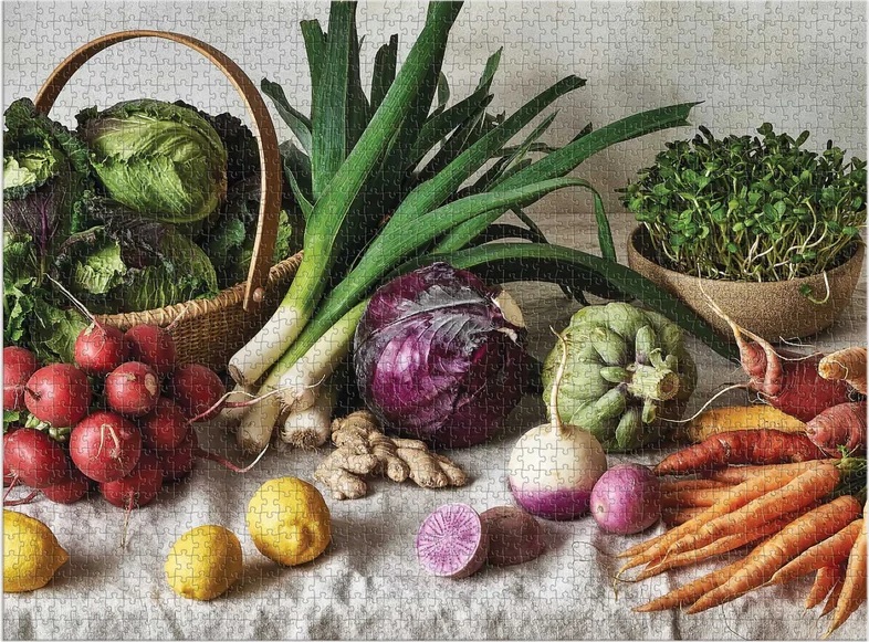 Puzzle predstavuje obraz miestnej produkcie z greenmarketu. Zostavenie tohto puzzle bude náročné, ale chutné! Puzzle je balené v pevnej krabici, na opätovné použitie a skladovanie. Ideálne ako darček. Autor obrázku je Bella Karragiannidis.