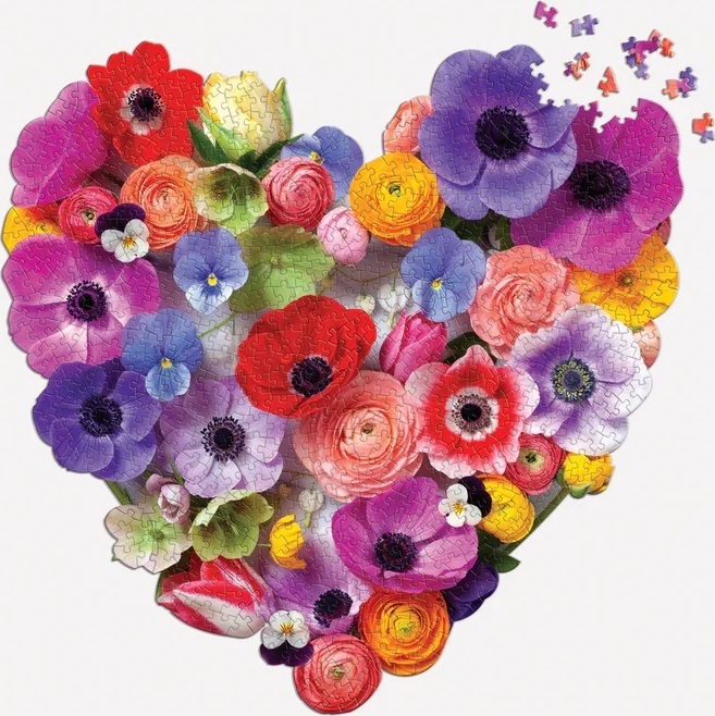 Puzzle ponúka krásne kvety usporiadané do tvaru farebného srdca od umelkyne Julie Seabrook Ream. Puzzle je balené v pevnej krabici, na opätovné použitie a skladovanie. Ideálne ako darček.