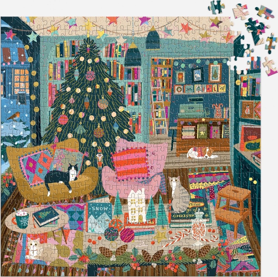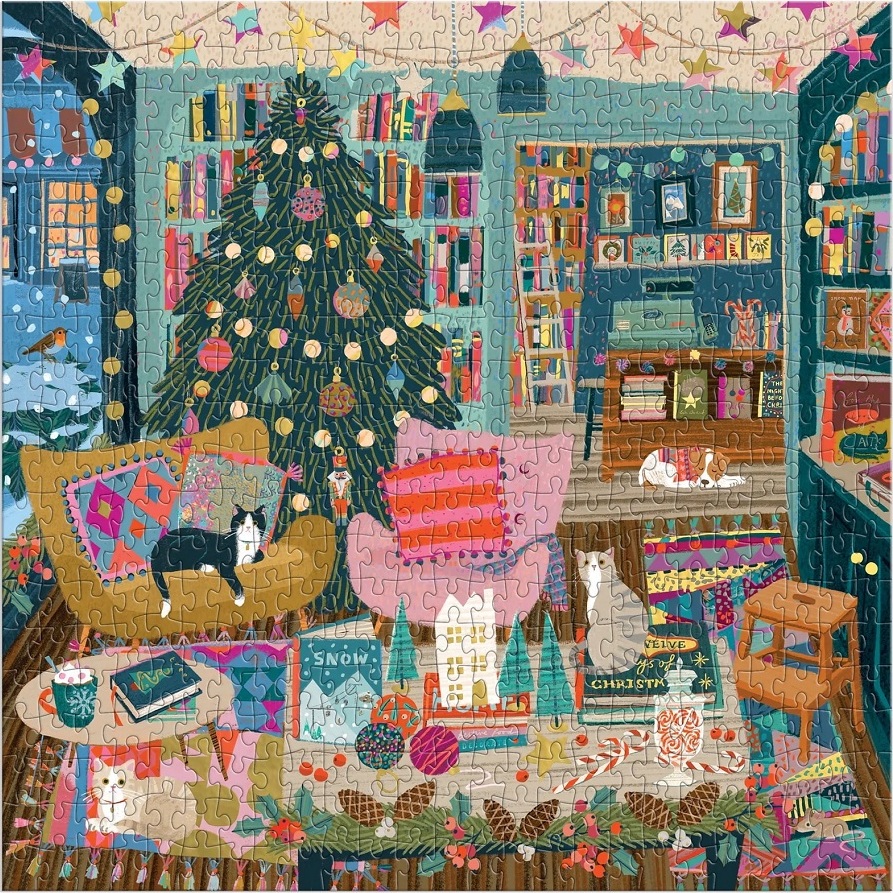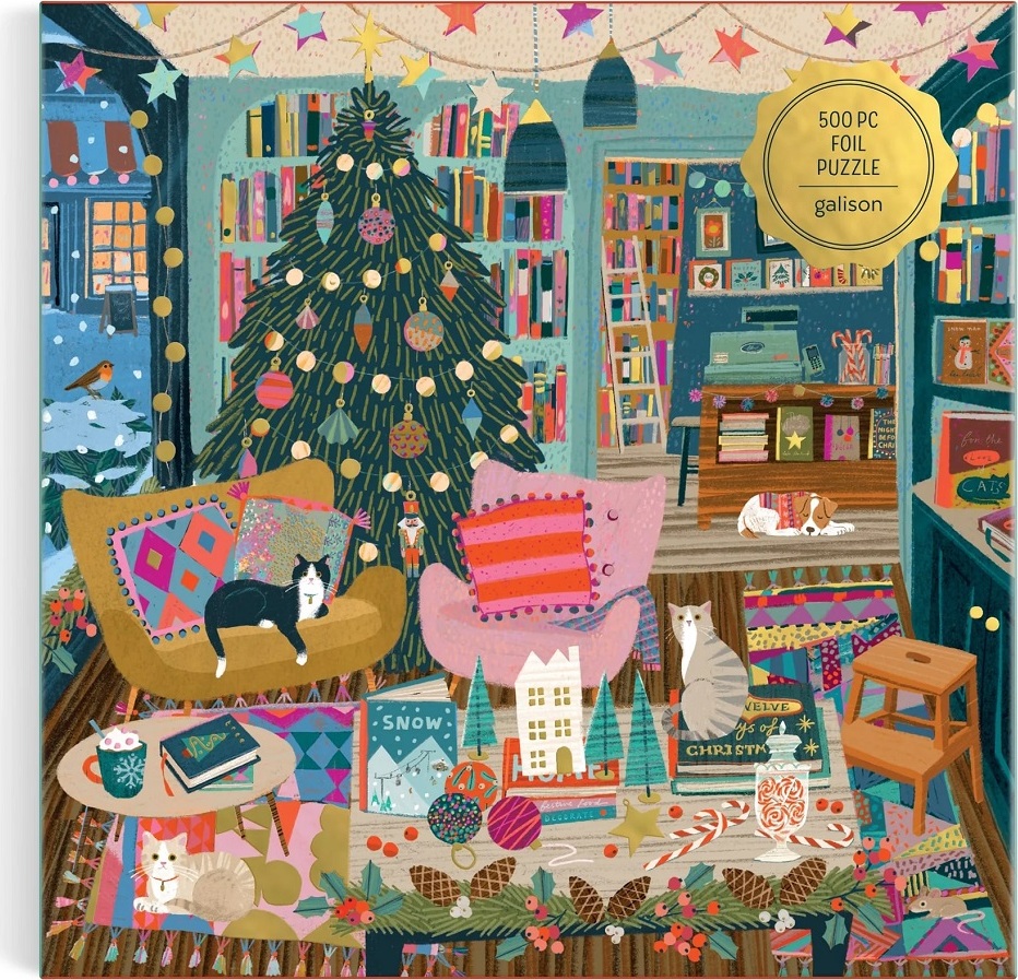 Galison Fóliové puzzle Vianočné kníhkupectvo 500 dielikov