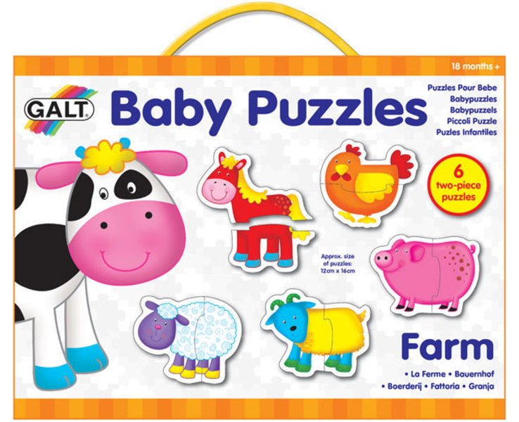 Baby puzzle aj pre Vaše dieťa. Šesť obrysových dvojičiek pre najmenšie deti s motívom zvieratiek z farmy. Veľké dieliky s hrúbkou 3 mm sú pre malé detské ručičky ľahko uchopiteľné a prvé skladanie rozvíja manuálnu zručnosť, koordináciu aj priestorovú orientáciu. Približná veľkosť jedného puzzle: 16 x 12 cm. Vhodné pre deti od 18 mesiacov. Rozmer zloženého puzzle cca 16 x 12 cmVlastnosti