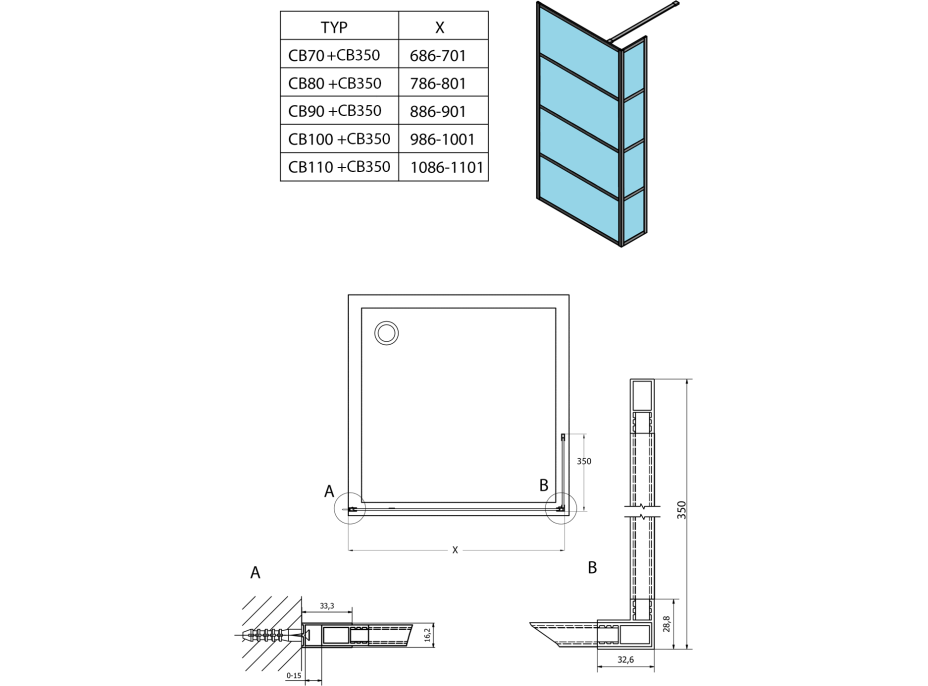 Charakteristika sprchových walk-in zásten série CURE BLACK
