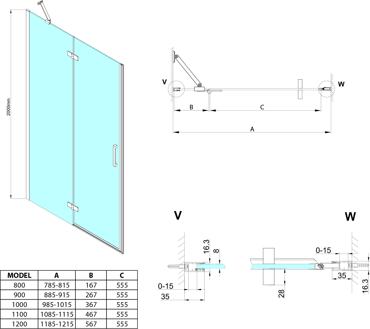 - Výška: 2000 mm