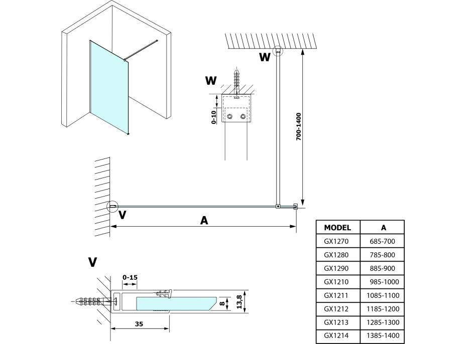 - Stenové profily s toleranciou 15 mm uľahčujú stabilnú montáž zásten, inštalácia je možná na dlažbu alebo sprchovú vaničku