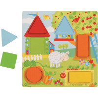 Obsahuje: 4 obrázky, 24 farebných tvarov, 2 kocky, návod.