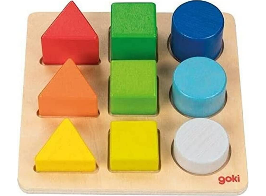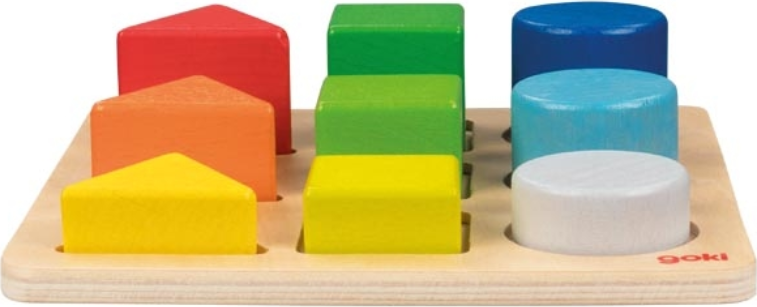 Drevená podložka na triedenie farebných tvarov rôznej veľkosti je ideálna na zoznamovanie detí s tvarmi, rozmermi a farbami. Vyrobené z masívneho dreva, kreatívne a hravé učenie, precvičuje šikovné detské prstíčky, podporuje jemnú motoriku, logiku a zmyslové vnímanie, napomáha pri učení tvarov a farieb. Rozmery: 15 x 15 x 3,7 cm. Obsahuje: podkladovú dosku z prírodného dreva a 9 farebných tvarov. GOKI patrí medzi najvýznamnejších európskych výrobcov hračiek s vysokou pedagogickou a didaktickou kvalitou. Firma kladie dôraz na bezpečnosť hračiek, ich zdravotnú nezávadnosť a dbá na obnoviteľné zdroje. Drevo je brané tam, kde môže dorastať. Používané dreviny sú javor, buk, orech, lipa, jaseň, borovica, breza a gumovník. Farby a laky pochádzajú od menších výrobcov.Vlastnosti