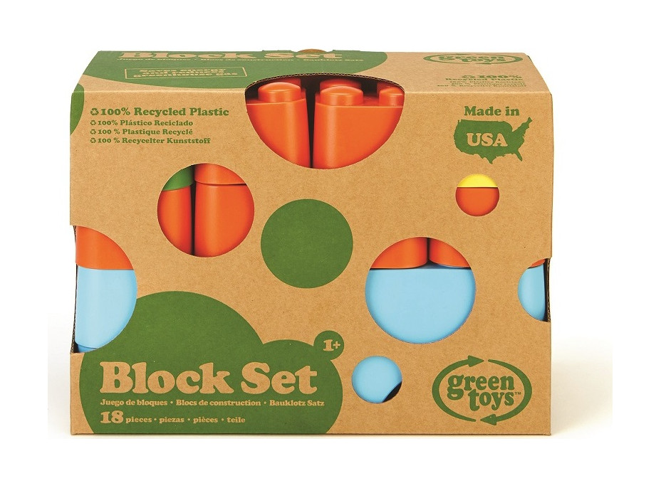 Green Toys Block Set je najekologickejšia základná stavebnica na svete. A teraz je lepšia ako kedykoľvek predtým! 18 výrazne sfarbených blokov bolo prepracovaných pre ľahšie uchopenie a lepšie stohovanie. Sú ľahké a pri tom pevné bez malých častí alebo ostrých hrán. Táto jedinečná sada blokov obsahuje rôzne tvary na stavbu hradov, veží alebo akékoľvek imaginatívne stavby, ktorú si začínajúci architekti môžu vysnívať.