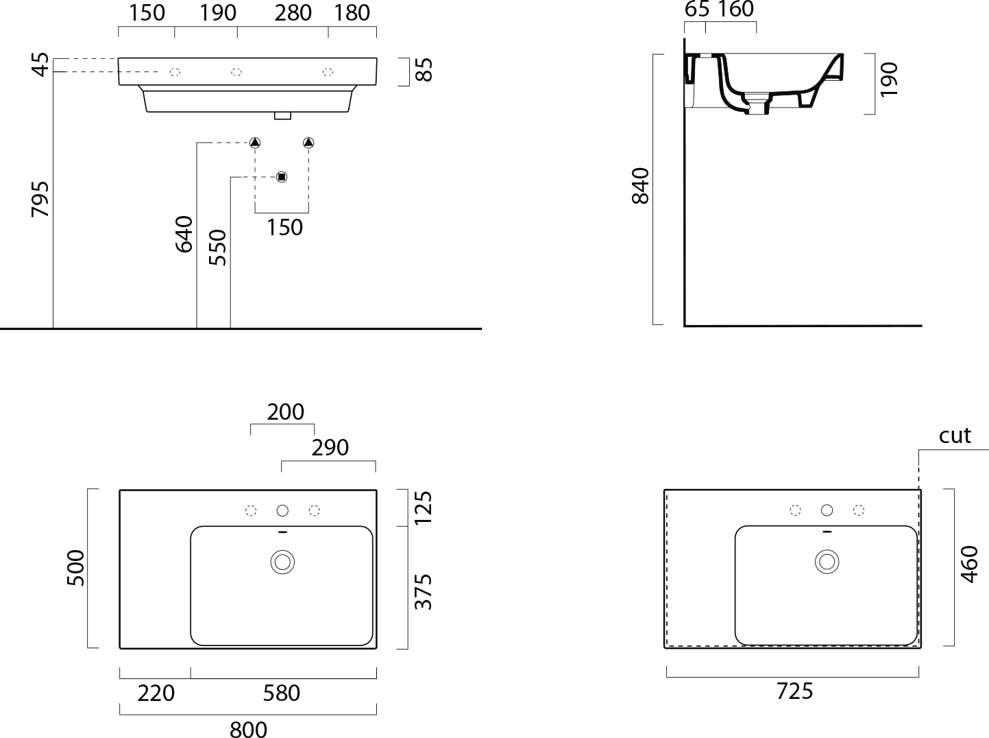- Hranaté umývadlá s decentne zaoblenými rohmi a štíhlou hranou