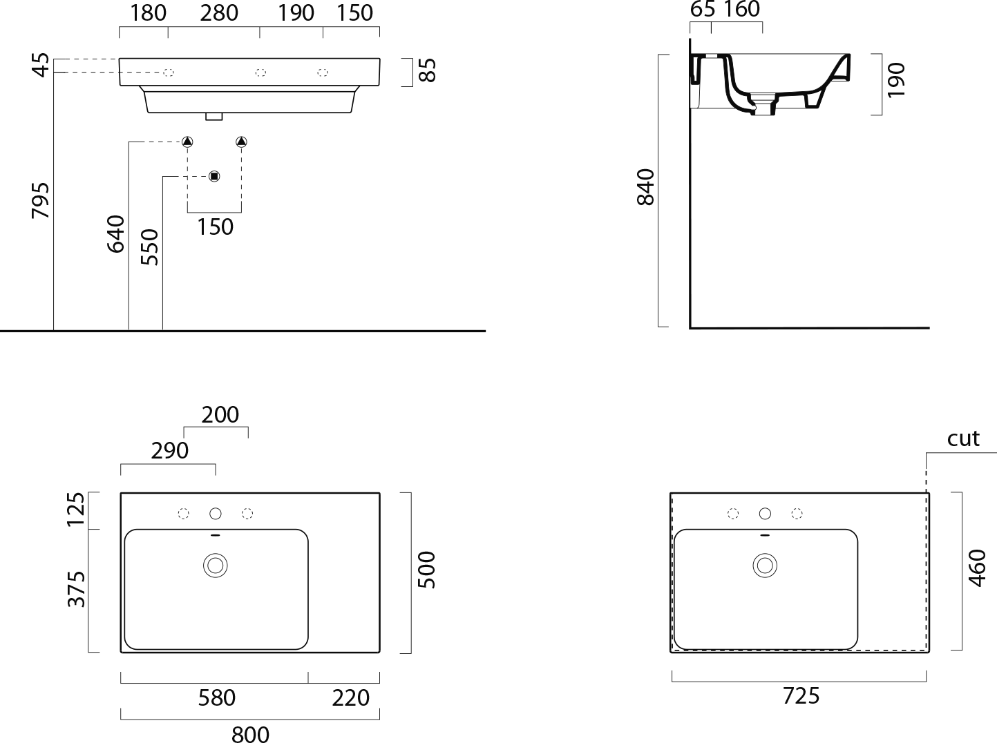 - Hranaté umývadlá s decentne zaoblenými rohmi a štíhlou hranou