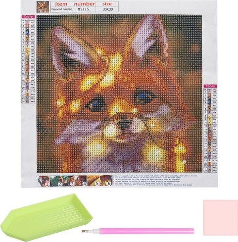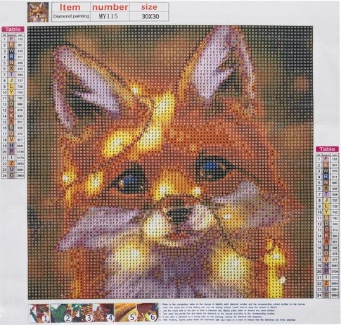 Balenie obsahuje: predlohu, farebné diamanty, aplikátor, suché lepidlo, nádobku