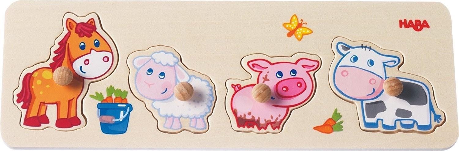Drevená vkladačka s úchytkami od výrobcu HABA.