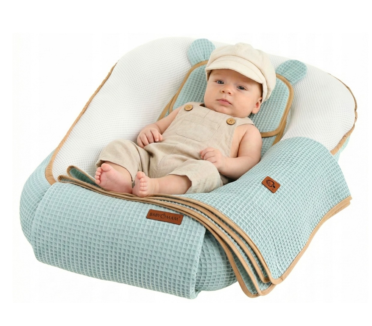 Hľadáte relaxačný priestor pre vaše dieťa, ktorý v sebe spája útulnosť, najvyššiu úroveň bezpečnosti a moderné technológie? Objavte Babymam AIR 3D SAFE SLEEP SET - sadu určenú pre čo najpokojnejší odpočinok novorodencov a dojčiat (a ich rodičov!). Nie je to len tak hocijaké hniezdočko. Je to inovatívny systém pre bezpečný a hygienický priestor, ktorý kombinuje inovatívnu technológiu voľného dýchania s prirodzenou krásou 100% bavlny. Najväčším záujmom každého rodiča je bezpečnosť jeho dieťaťa pri spánku. Táto sada tieto starosti eliminuje vďaka použitiu pokročilej 3D štrukturálnej sieťoviny v hniezdočku, matraci a vankúši. Aj keď sa vaše dieťa prevalí na bruško a priloží si tvár k matracu, vankúšu alebo kokonu, unikátna kanáliková štruktúra sieťoviny zaručuje neustály prúd kyslíka. Dieťa môže voľne dýchať v akejkoľvek polohe! Novorodenci majú nezrelý systém termoregulácie. Systém 3D vzduchových kanálikov odvádza prebytočné teplo a vlhkosť, čím zabraňuje poteniu, odreniu a prehriatiu. Vytvára sa tak zdravá mikroklíma. Súprava obklopuje dieťa nielen technológiou, ale aj prírodou. Vonkajšia vrstva kokonu a priložená deka sú vyrobené z najkvalitnejšej 100% bavlny s vaflovým vzorom.