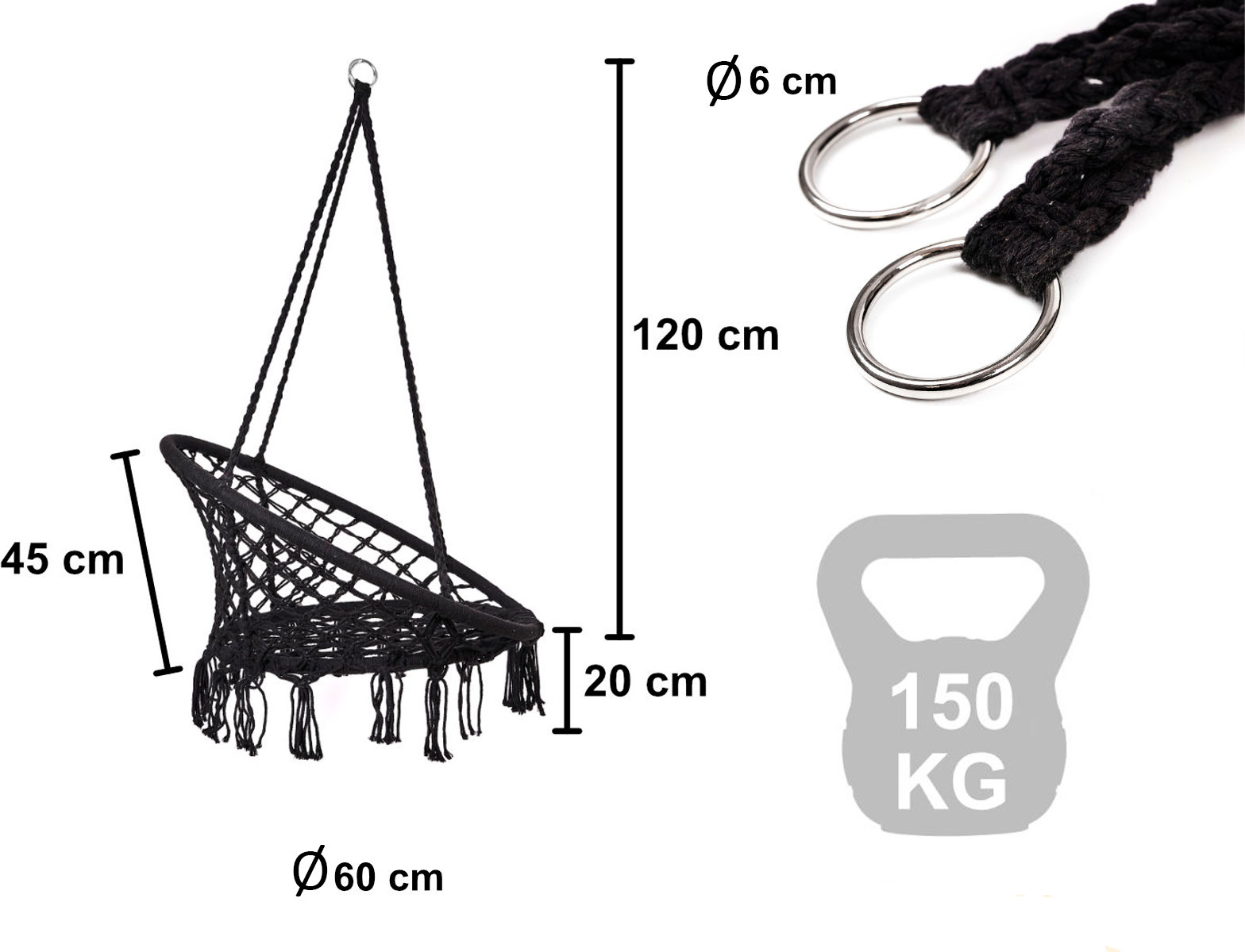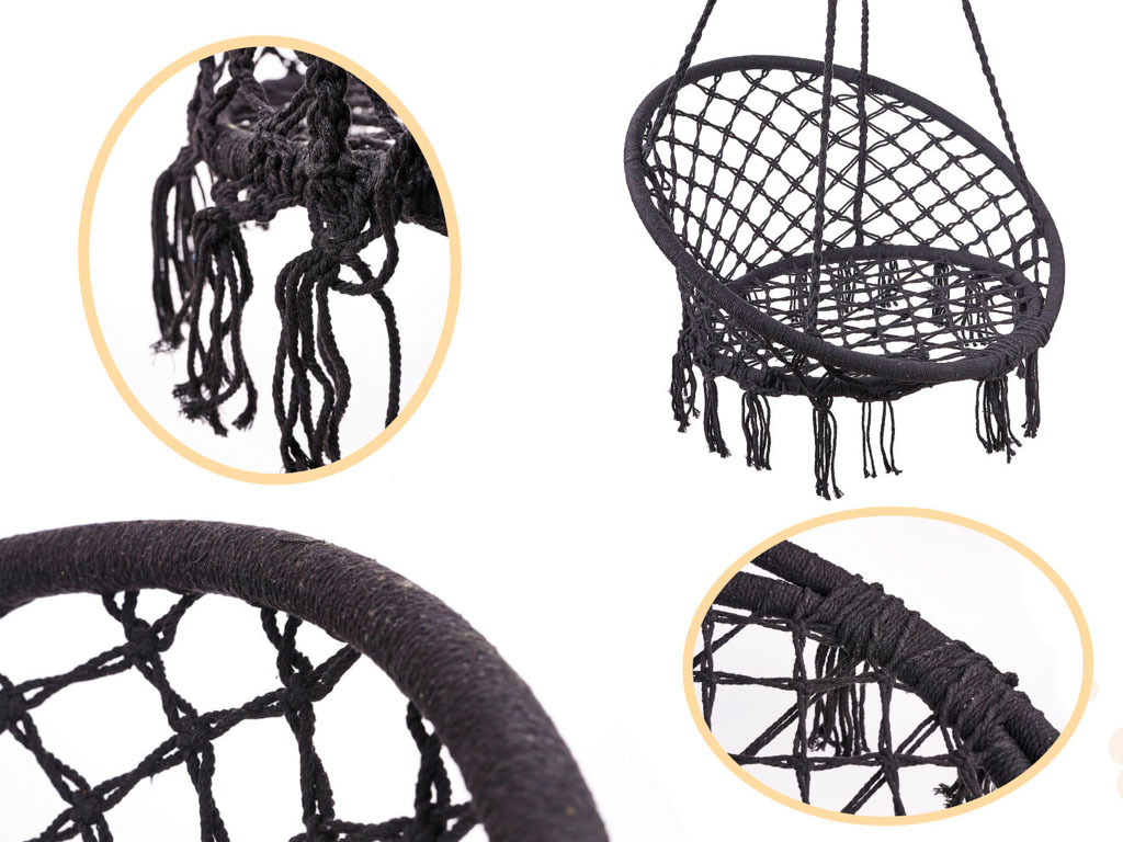 Silné, špeciálne tkané laná a kovový rám zaisťujú bezpečnosť pri relaxácii. Môžete si byť istí, že hojdačka vydrží dlho. Čapí hniezdo je domáce ihrisko pre deti a relaxácia pre dospelých. Všetci si ju určite užijú. Veľký priemer sedadla zaručuje dostatok priestoru na relaxáciu a hranie. Pohodlné operadlo a priestranný sedák poskytujú výnimočné pohodlie. S touto hojdacou sieťou v tvare kresla je relaxácia čistým potešením! Nechajte sa ovládnuť svojimi snami, uvarte si svoj obľúbený čaj a vezmite si pútavú knihu.