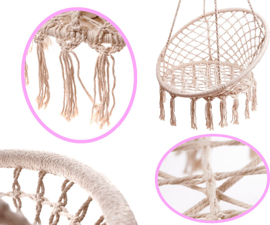 Silné, špeciálne tkané laná a kovový rám zaisťujú bezpečnosť pri relaxácii. Môžete si byť istí, že hojdačka vydrží dlho. Čapí hniezdo je domáce ihrisko pre deti a relaxácia pre dospelých. Všetci si ju určite užijú. Veľký priemer sedadla zaručuje dostatok priestoru na relaxáciu a hranie. Pohodlné operadlo a priestranný sedák poskytujú výnimočné pohodlie. S touto hojdacou sieťou v tvare kresla je relaxácia čistým potešením! Nechajte sa ovládnuť svojimi snami, uvarte si svoj obľúbený čaj a vezmite si pútavú knihu.