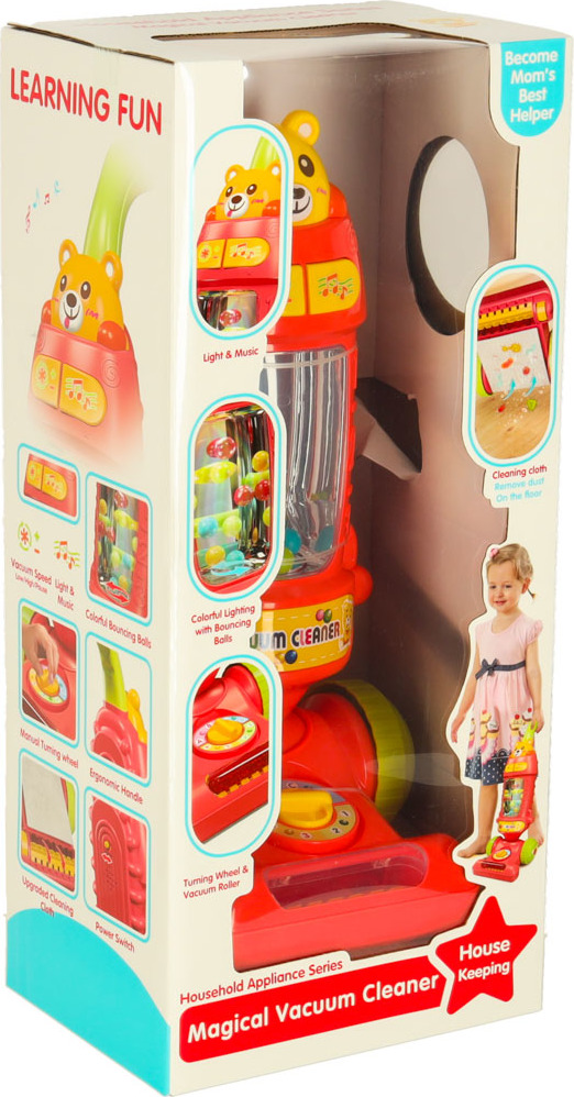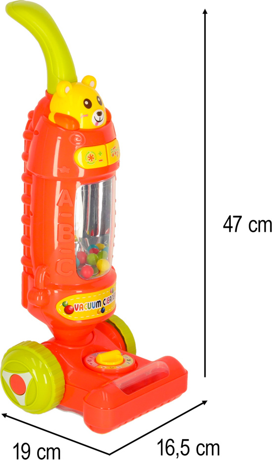 Dětský vysavač je interaktivní hračka, která batolatům umožňuje stát se malými pomocníky s domácími pracemi. Jeho realistické funkce dělají úklid zábavným. Vysavač obsahuje barevné kuličky, které se během používání vznášejí a napodobují tak činnost skutečného vysavače. Hračka vydává realistické zvuky a další světelné efekty a možnost přehrávání melodií dělají hru ještě poutavější. Vysavač byl navržen s ohledem na nejmenší děti – jeho výška se přizpůsobuje jejich výšce, což zajišťuje pohodlné používání. Je to skvělý způsob, jak rozvíjet motorickou koordinaci, napodobovat dospělé a učit se základním domácím pracím hrou.
