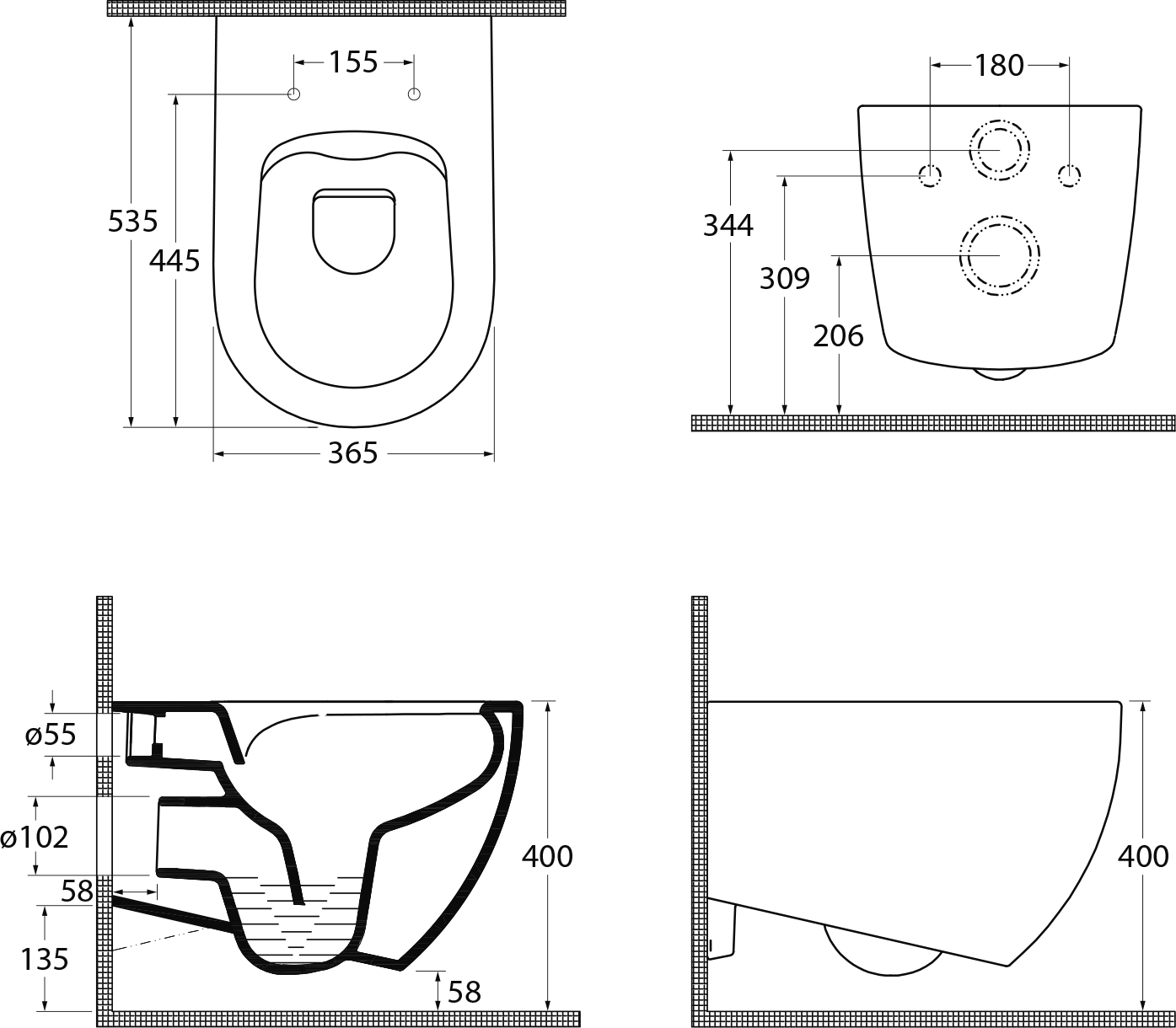 Rimless (NoRim) – toalety bez tradičného oplachového kruhu. Hladký povrch bez dutín a záhybov. Oplachová voda vyteká rozdeľovačom vody iba zo zadnej časti WC misy a vďaka špeciálnemu tvaru keramiky dokonale opláchne vnútorný priestor. Výhodou je ľahká údržba a čistenie WC misy.