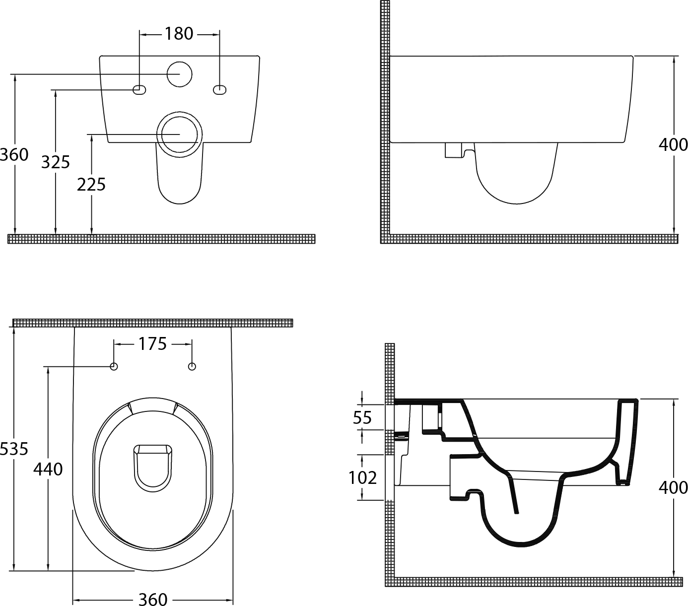 Rimless (NoRim) – toalety bez tradičného oplachového kruhu. Hladký povrch bez dutín a záhybov. Oplachová voda vyteká rozdeľovačom vody iba zo zadnej časti WC misy a vďaka špeciálnemu tvaru keramiky dokonale opláchne vnútorný priestor. Výhodou je ľahká údržba a čistenie WC misy.