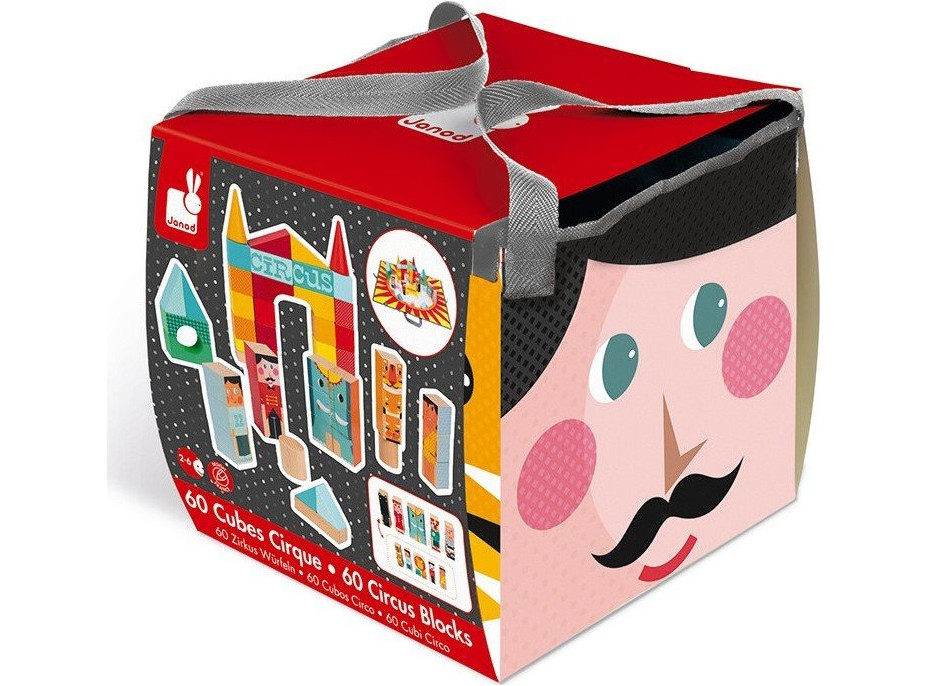 JANOD Drevené kocky Kubix Cirkus 60ks so skladacou podložkou