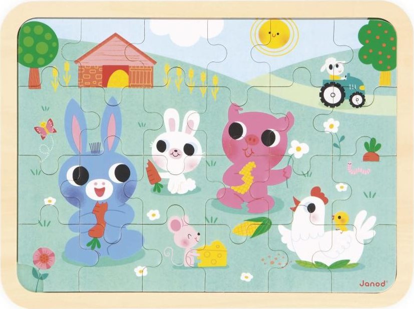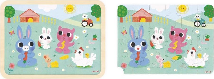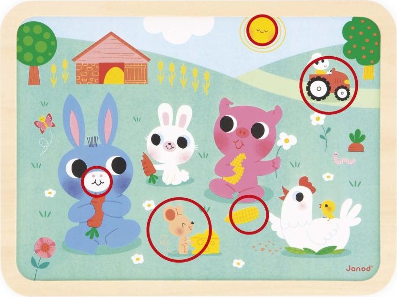 JANOD Drevené puzzle s hľadaním rozdielov Farma 24 dielikov