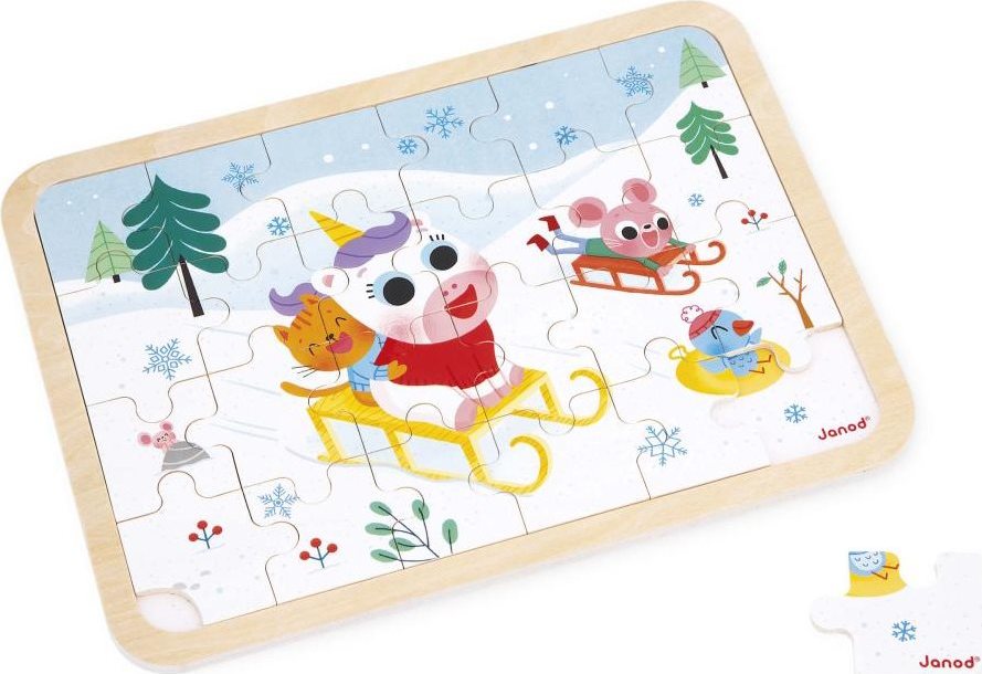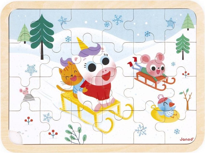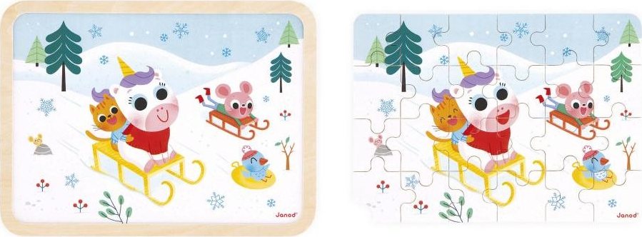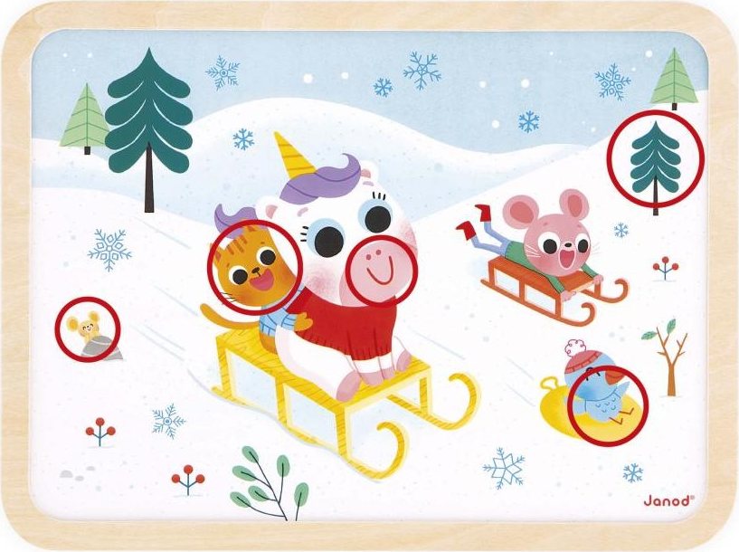 JANOD Drevené puzzle s hľadaním rozdielov Sánkovanie 24 dielikov