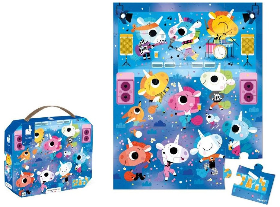 JANOD Puzzle v kufríku Jednorožci na koncerte 24 dielikov