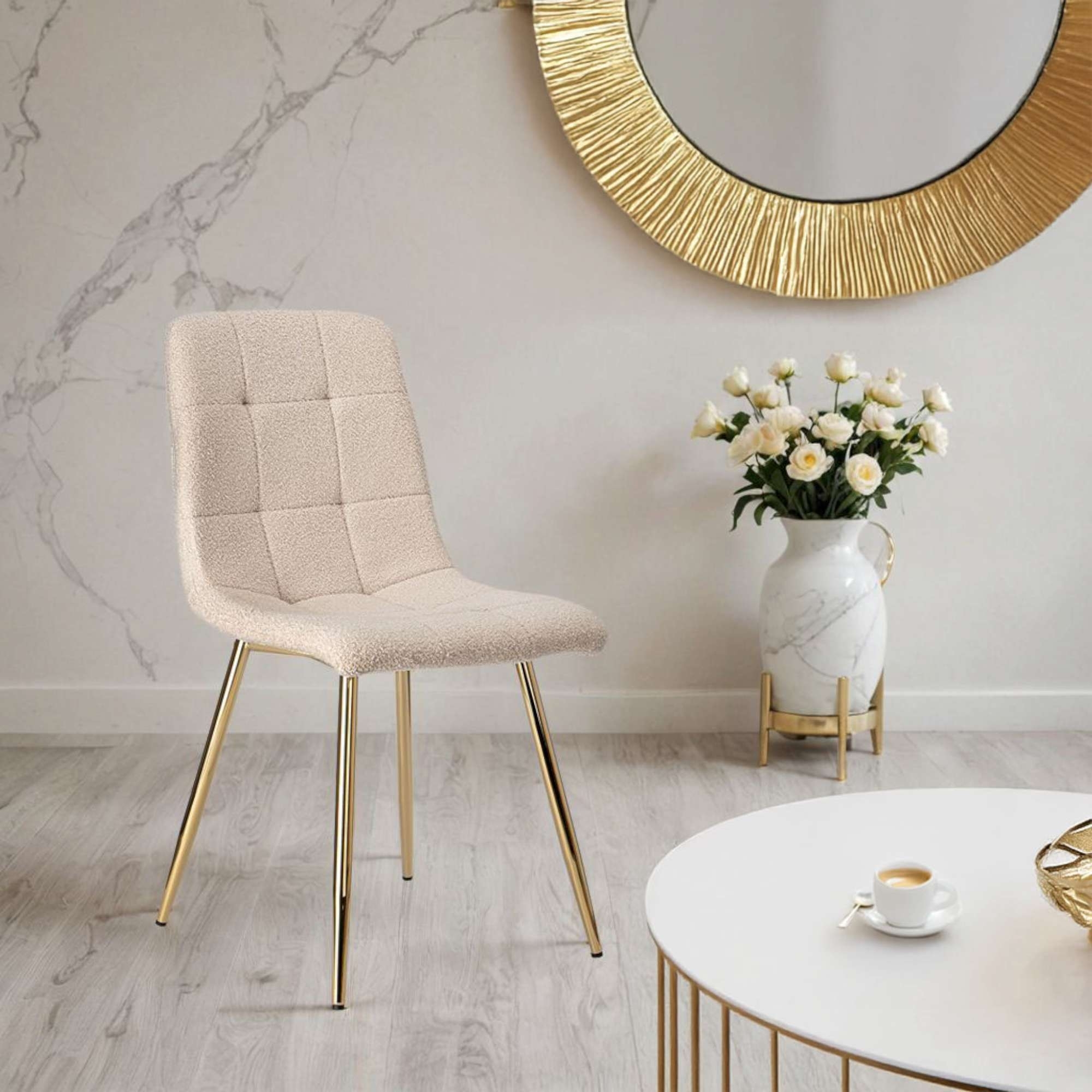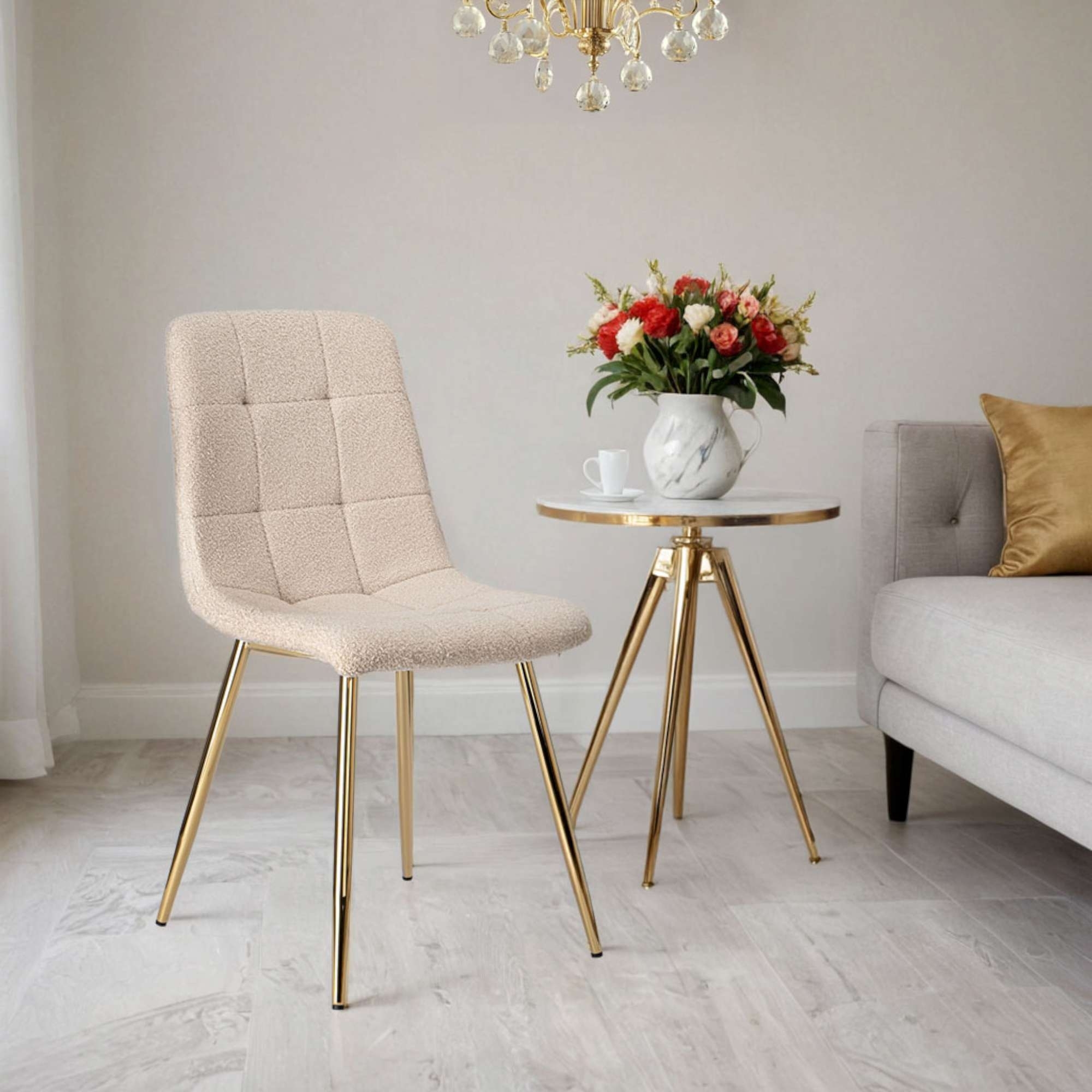 Jedálenská stolička DENVER TEDDY GOLD bouclé - béžová/zlatá
