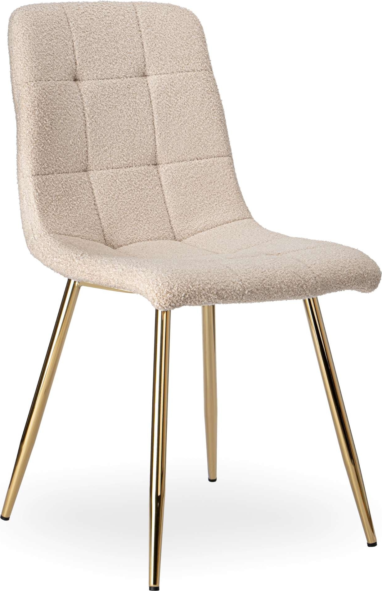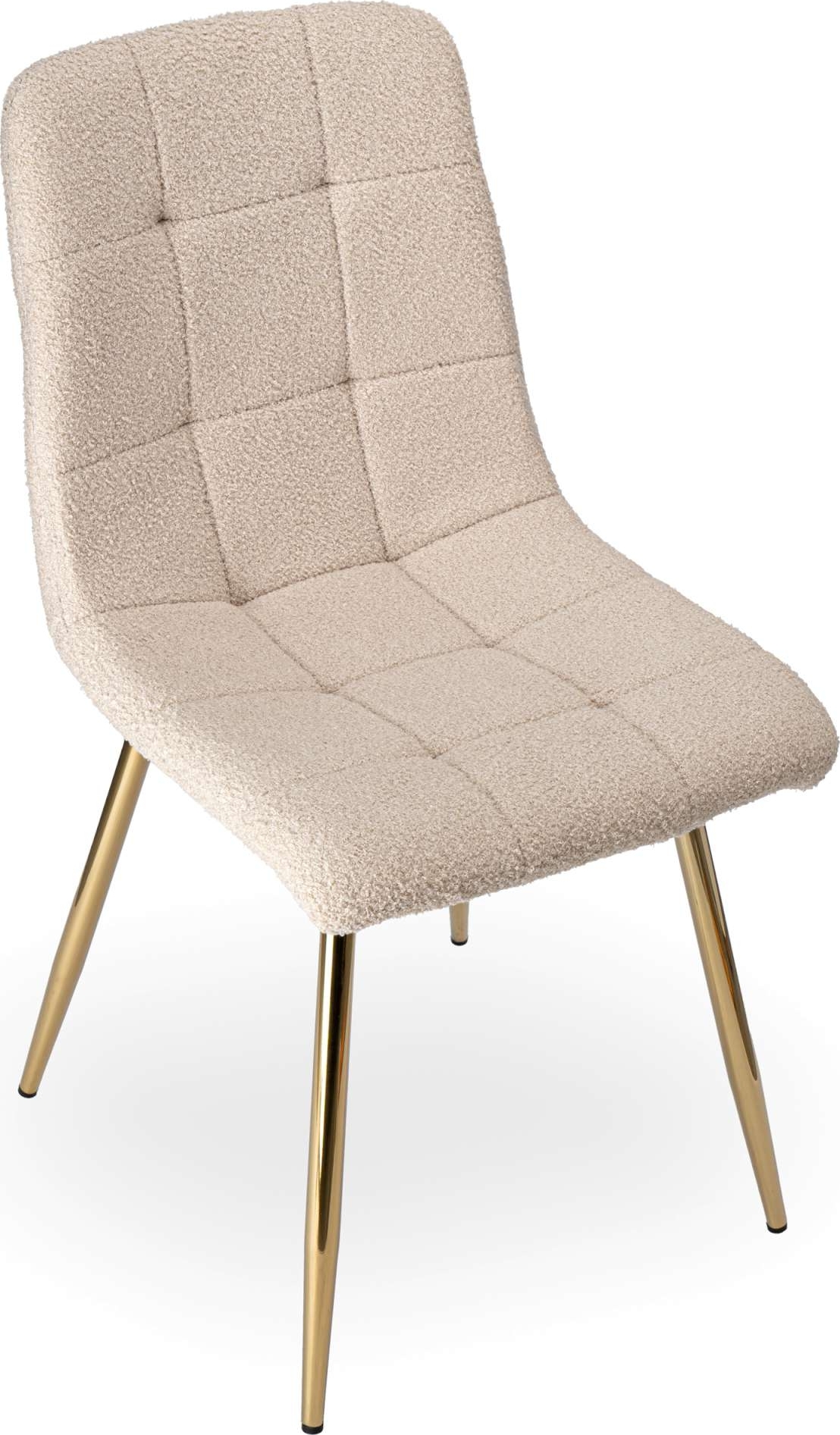 Moderná, pohodlná a funkčná stolička Denver z kolekcie Teddy je moderná stolička s jedinečným dizajnom. Stolička je vyrobená z najkvalitnejších materiálov s dôrazom na najmenšie detaily. Sedák je čalúnený príjemne mäkkým strižným materiálom. Tento materiál je tkanina s charakteristickou textúrou boucle loop. Vďaka tomu je nielen veľmi hebký na dotyk, ale aj nadýchaný a hrejivý. Jedným z najcharakteristickejších prvkov stoličky je jej prešívanie, ktoré vytvára zaujímavý mriežkový vzor na operadle a sedáku. Nejde len o dekoratívny detail, ale aj o ďalšiu vrstvu pohodlia, ktorá zaisťuje správnu podporu chrbta a pohodlia pri používaní. Nohy stoličky sú vyrobené z práškovo lakovanej ocele, ktorá im dodáva nielen elegantný vzhľad, ale taktiež zaisťuje mimoriadnu životnosť a odolnosť. Ich zlatá farba dodáva stoličke vycibrený charakter, ktorý sa perfektne hodí k rôznym štýlom interiéru. Čalúnené kreslo Denver je kombináciou vynikajúceho dizajnu a funkčnosti. Skvele bude fungovať v moderných aj klasických interiéroch a dodá im jedinečné kúzlo. Vďaka vysoko kvalitným materiálom a starostlivému spracovaniu vám táto stolička bude slúžiť mnoho rokov a poskytne pohodlie a eleganciu.