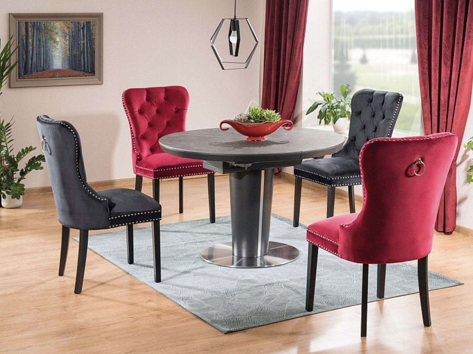 Elegantná jedálenská stolička FARIAL je kusom nábytku, ktorý dodá interiéru štýl a eleganciu. Stolička je čalúnená na dotyk príjemnou látkou - zamatom, ten je navyše prešívaný ozdobnými gombíkmi, čo nábytku dodáva výnimočnosť. Na operadle je umiestnený ďalší ozdobný prvok - klopadlo, ktoré robí stoličku originálnou a jedinečnou. Stolička má masívne drevené nohy, vďaka ktorým je stabilná a pevná.
