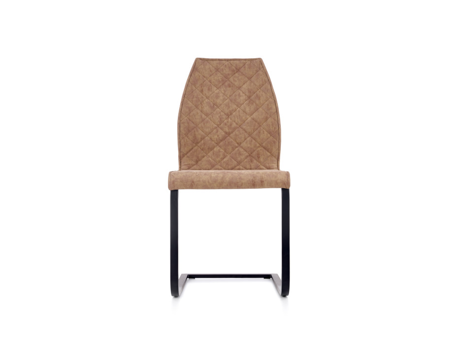 Moderná jedálenská stolička vyrobená zo sedadla z preglejky v dekore duba medového s čiernou matnou kovovou základňou a poťahom z eko kože v hnedej farbe krásne doplní interiér Vášho domova. Sedák a operadlo sú potiahnuté kvalitnou umelou kožou príjemnou na dotyk . Táto stolička je vhodným spoločníkom nielen do jedální, ale aj do kuchýň a obývacích izieb. Zaujímavý a pritom nadčasový dizajn stoličky zaručuje moderný vzhľad po mnoho rokov.