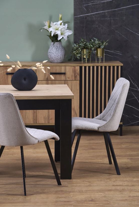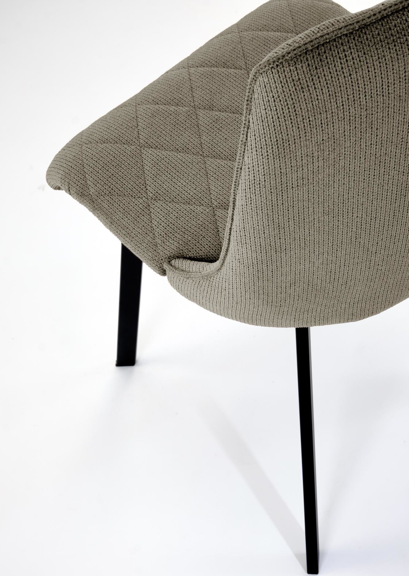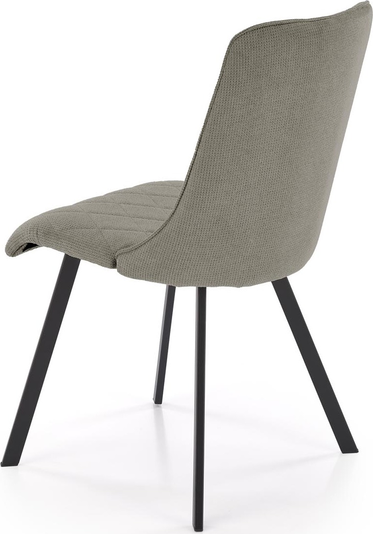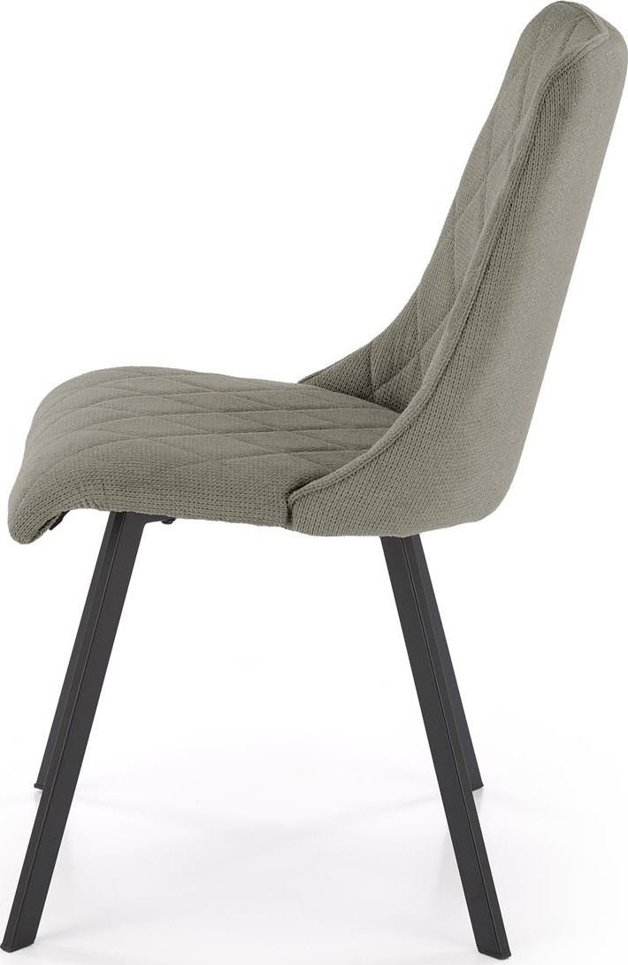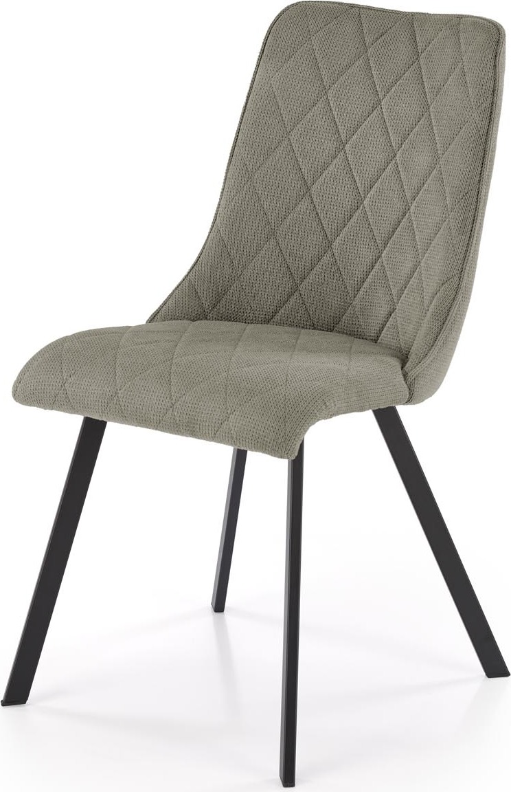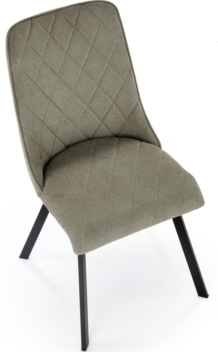 Jedálenská stolička VIOLET má pohodlné sedadlo a operadlo s ozdobným prešívaním, ktoré dodávajú nábytku jedinečný dizajn. Povrch stoličky je čalúnený na dotyk príjemnou látkou VARDO v olivovo zelenej farbe, nohy sú vyrobené z čiernej práškovo lakovanej ocele, vďaka čomu sa nábytok skvele hodí do loftových interiérov. Kovový rám zaručuje stoličku vysokú odolnosť a stabilitu pri používaní. Takto konštruovaný nábytok určite osloví ľudí, ktorí hľadajú elegantné a moderné riešenie do svojho bytu. Tvarovaná chrbtová opierka zaisťuje maximálne pohodlie.