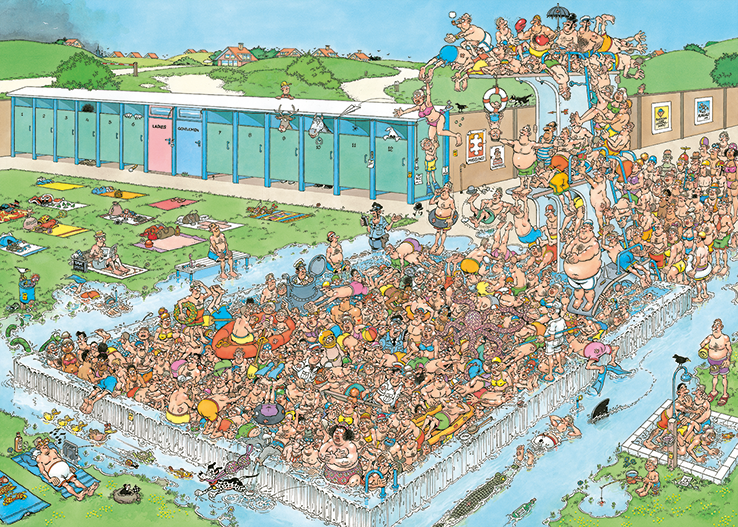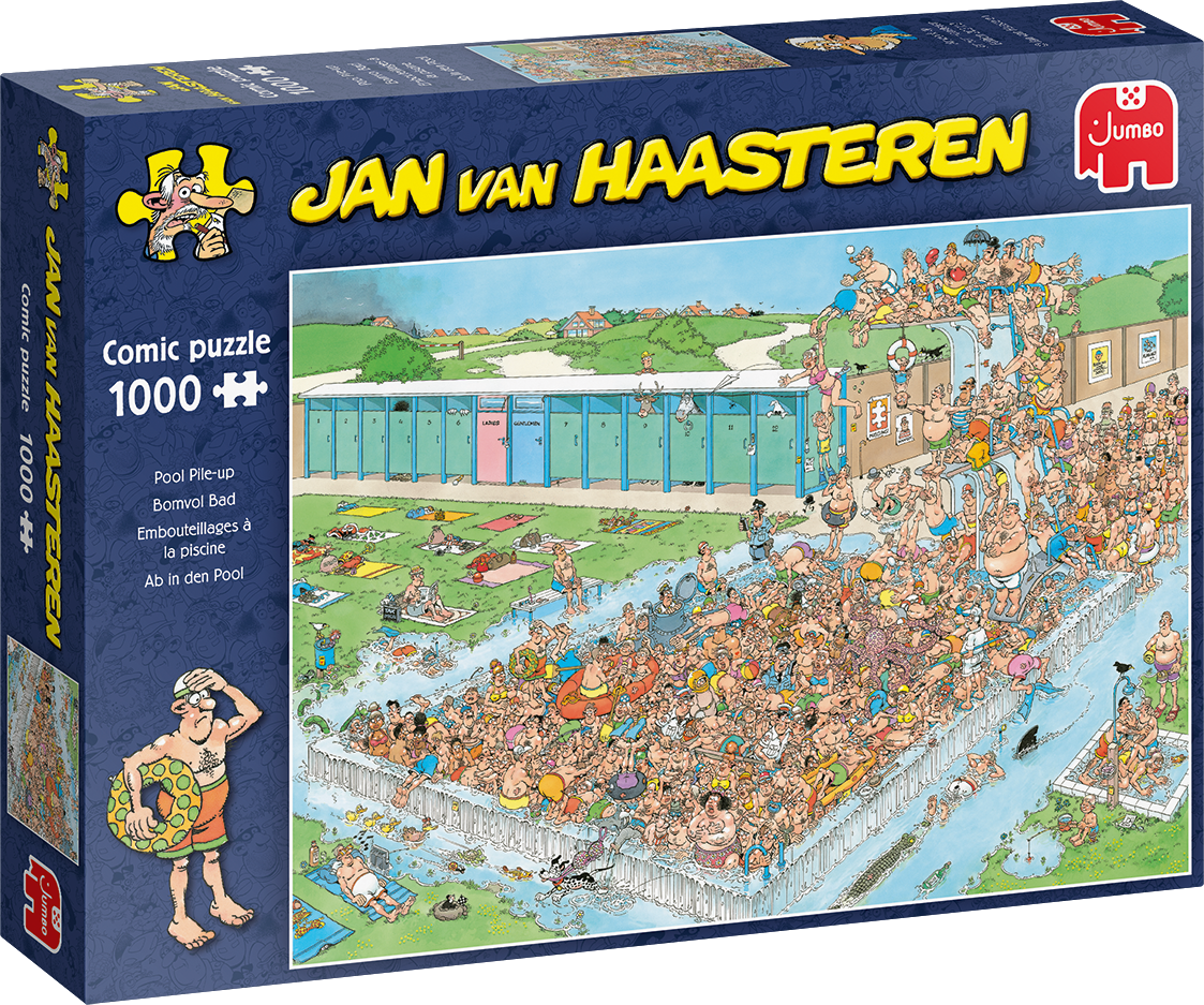 Skladanie puzzle od Jana van Haasterena je veľmi pestré a zábavné, preskúmate tak každý vtipný detail a zabavíte sa na dlhé chvíle. V súlade so svojimi tradíciami komponuje Jan van Haasteren do svojich predlôh svoju známu značku, ktorú ako prví jeho fanúšikovia hľadajú - žraločia plutva a ruky, ktoré vyzerajú, ako by nikomu nepatrili! A tiež mnoho ďalších detailov, ktoré nájdete na takmer všetkých jeho ilustráciách - zubnú protézu, Mikuláša a Haasterenov vlastný portrét. Veľmi detailné, farebné a predovšetkým vtipné ilustrácie od autora menom Jan Van Haasteren výhradne pre JUMBO. Jeho kresby majú výrazne rozoznateľný štýl - vtipné obrázky, veselé situácie a oveľa viac ľudí, než by ste očakávali! Puzzle z produkcie Jan van Haasteren sú po celom svete populárne a doteraz ich vytvoril viac ako 80.
