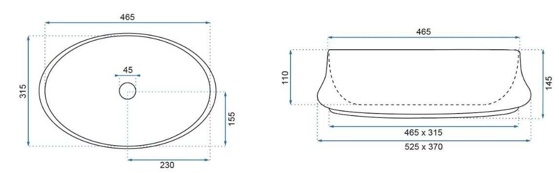 - Rozmery umývadla: 465 x 315 x 145 mm
