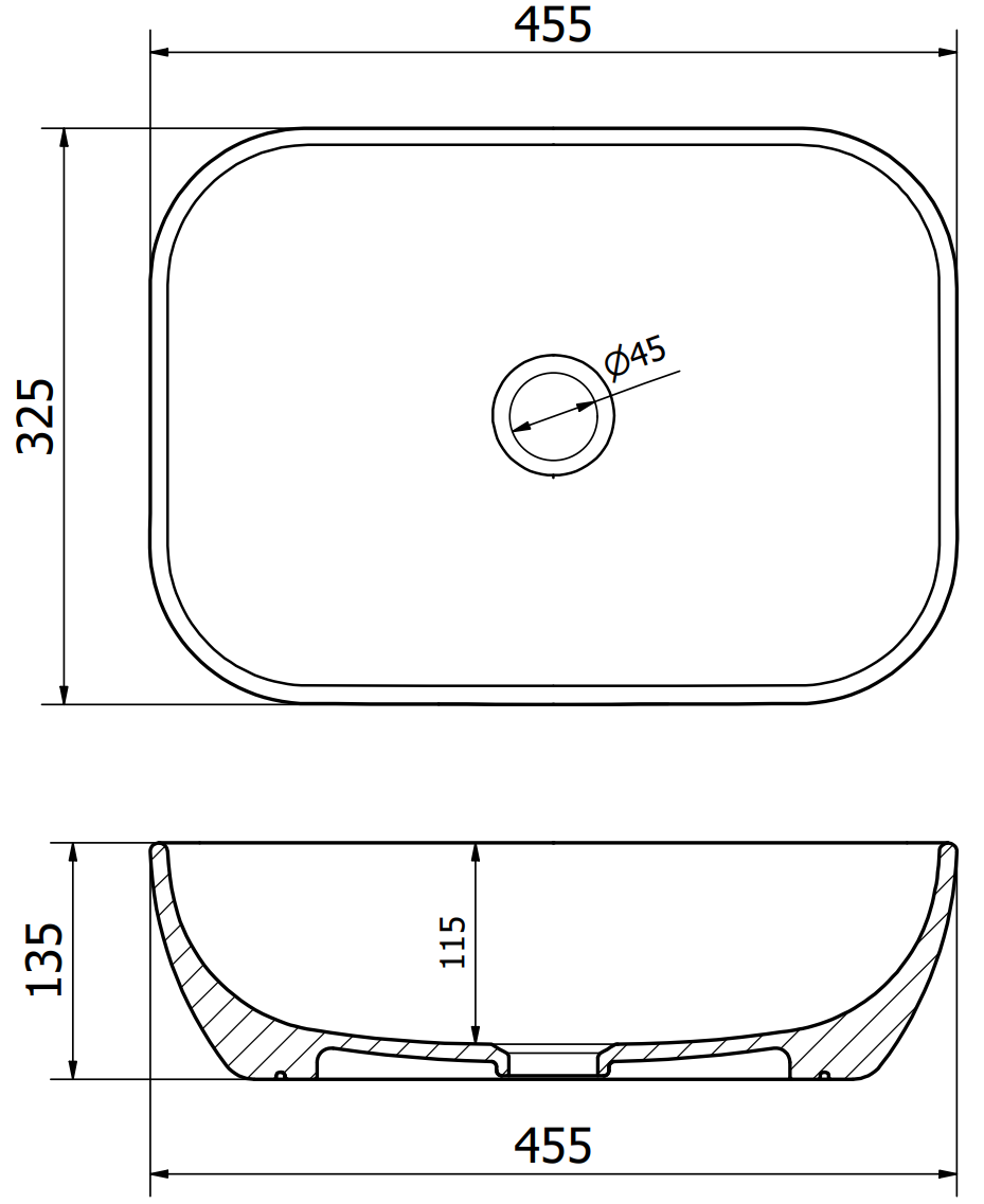 - Rozmer umývadla: 455 x 325 x 135 mm