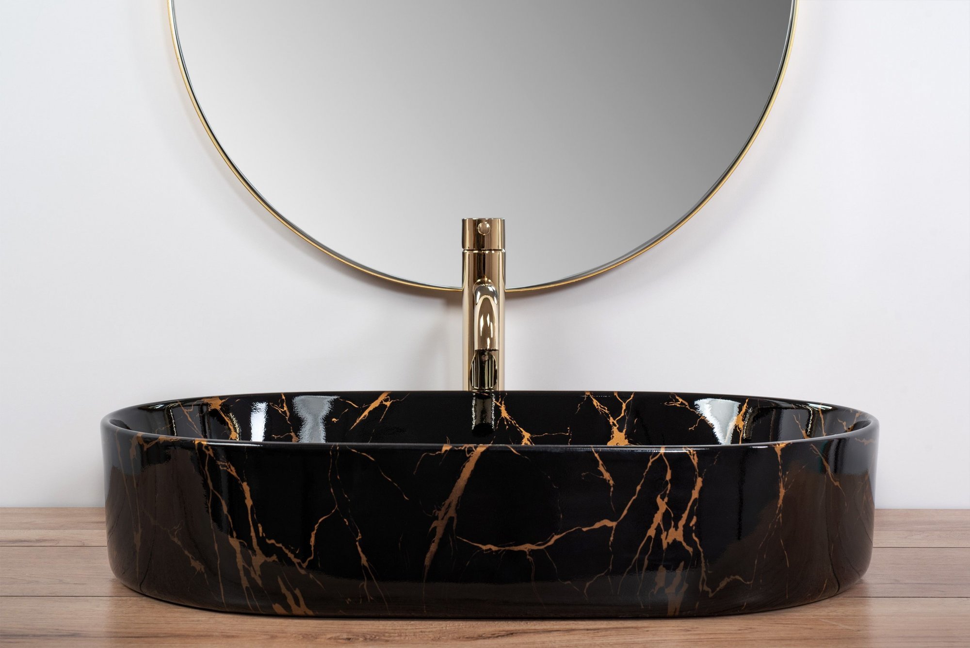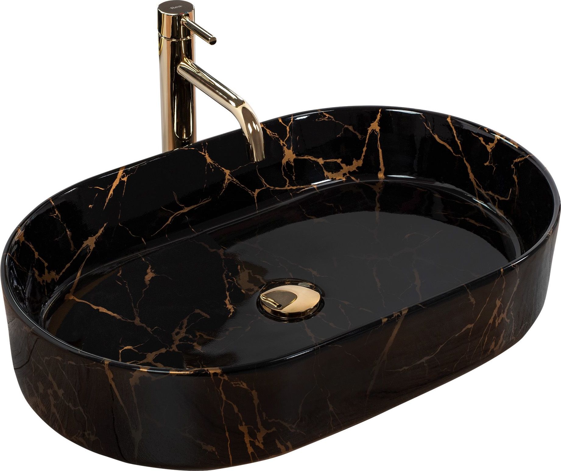 Keramické umývadlo Rea NADIA 61 BLACK MARBLE SHINY - dekor kameňa - čierne