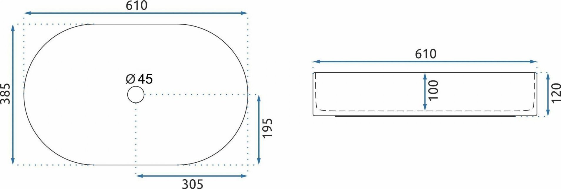 - Rozmer umývadla: 610 x 385 x 120 mm