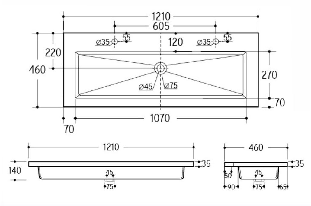 Keramické umývadlo SPIRIT WHITE 2 120 cm - biele