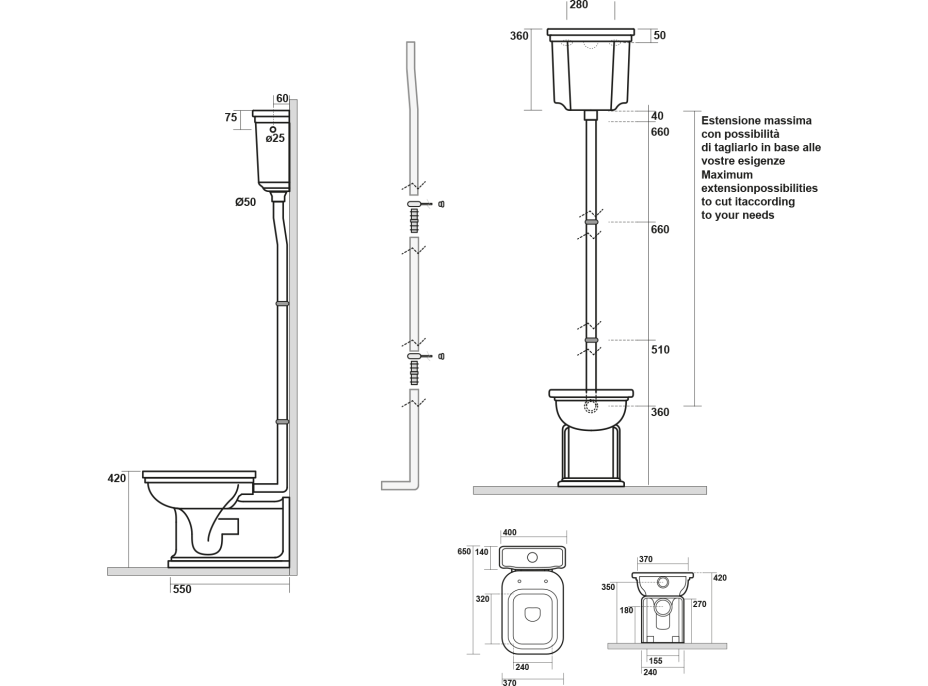Kerasan WALDORF nádržka vysoká, biela 418001