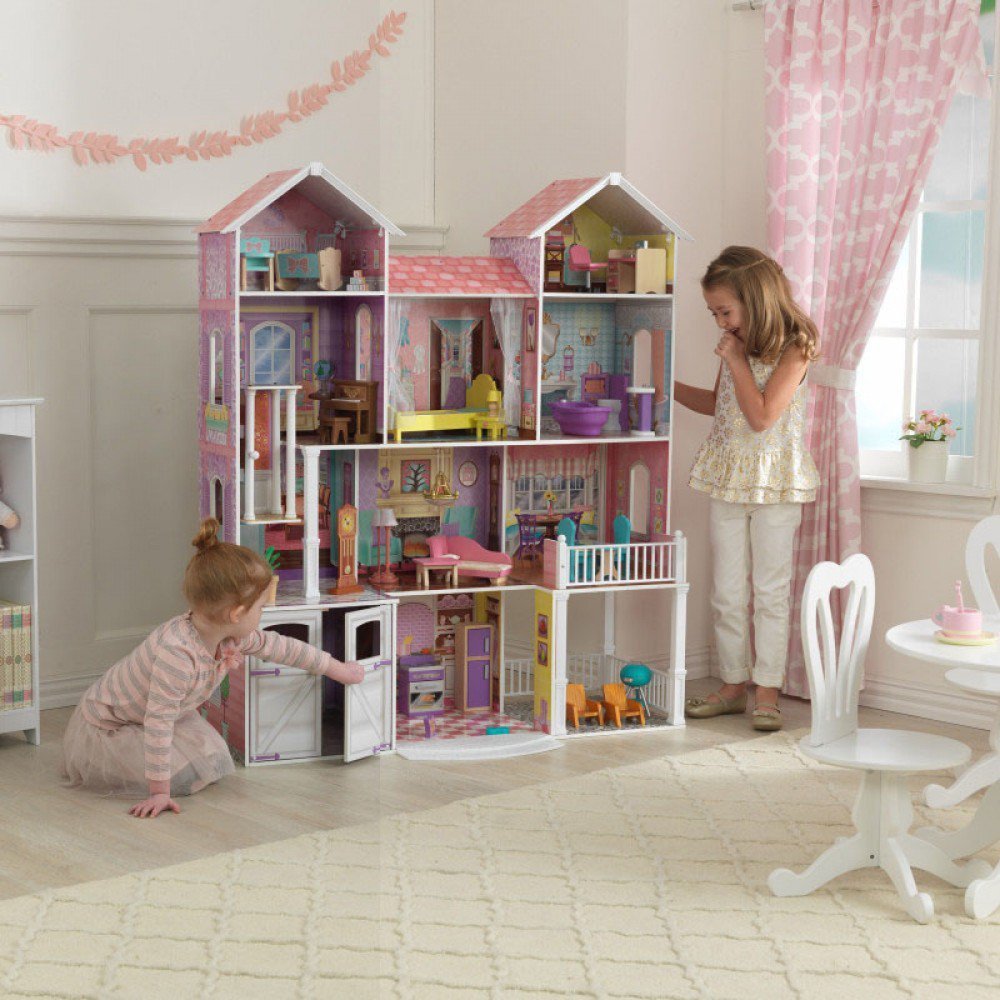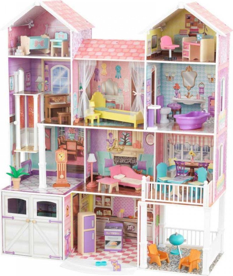 Krásny drevený domček od výrobcu KidKraft si zamiluje každé dievčatko. Očarujúce a moderné domček je dostatočne priestranný na hranie aj viac detí naraz. Je vybavený štyrmi podlažiami, desiatimi izbami, funkčným výťahom a terasou. Ďalší priestor, ktorý je možné využiť je garáž s funkčnými vrátami. Súčasťou domčeka je 31 ks vybavenia, ktoré priestranný dom pomôžu zútulniť. Rozmery hračky: 119 x 53 x 134 cm. Vhodné pre deti od 3 rokov.Vlastnosti
