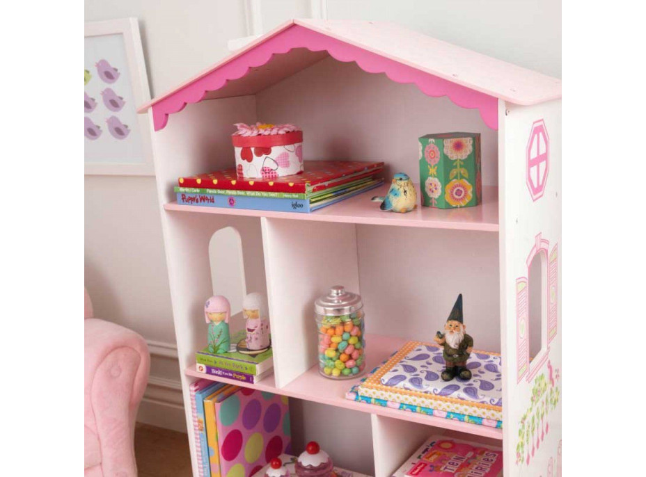 Originálna knižnica pre romány, horrory aj dobrodružné príbehy. Robustná knižnica od výrobcu KidKraft má tvar domčeka pre bábiky a stane sa praktickým doplnkom detskej izby aj Vašej princeznej. Vďaka kvalitnému drevenému materiálu je knižnica stabilná a bude rásť spolu s dieťaťom. Knižnica má strechu aj s komínom a maľované steny s okennými otvormi. Poličky majú pastelovo ružovú farbu. Uzatvárateľná polička je ozdobená maľovanými kvetmi, ktoré symbolizujú záhradku. Rozmery knižnice: 97 x 67 x 30 cm Súčasťou balenia je aj prehľadný návod na zostavenie nábytku. Vhodné pre deti od 3 rokov.Vlastnosti
