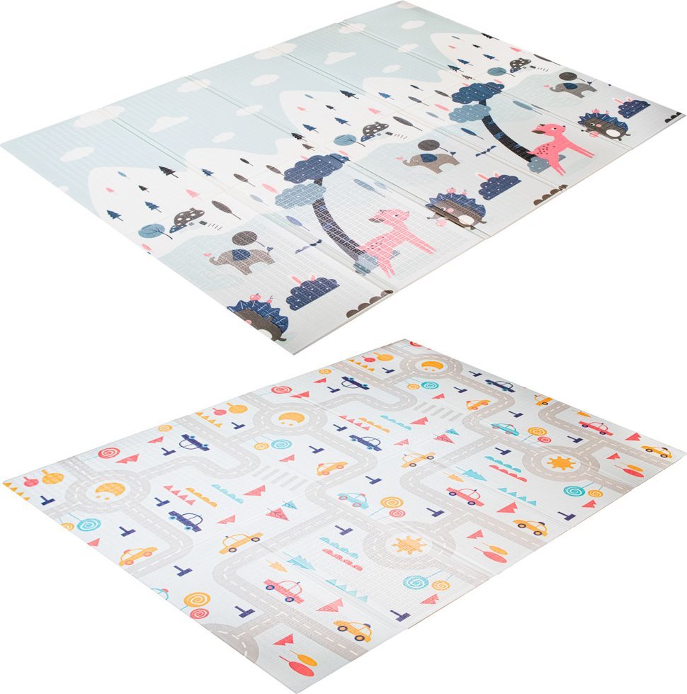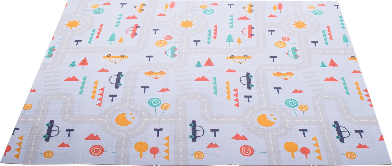 Obojstranná vzdelávacia penová podložka pre batoľatá a staršie deti poskytne deťom dostatok priestoru pre hru a zábavu. Farebná obojstranná potlač - Cesty s autami + Les so zvieratkami.