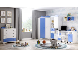 Nábytok kolekcie CLOUDS vyrobený z vysoko kvalitných materiálov sa vyznačuje svojou stabilitou a pevnosťou. Nábytok má farebné úchytky v tvare mrakov vyrobené z mäkkého plastu. To dodáva kolekcii jedinečný vzhľad a zároveň charakterizuje jej názov. Základné farebné prevedenie je biela farba v kombinácii so svetle modrou. Je ale možné zvoliť inú farebnú kombináciu z našej širokej ponuky podľa vašich predstáv alebo predstáv vašich detí či mladých študentov. V širokej ponuke tejto kolekcie nájdete postele, písacie stoly, komody, regály alebo police a to aj v niekoľkých variantoch prevedenia. Pre zvýšenie kapacity aj funkčnosti ponúkame šatníkové skrine s nástavcami, čím získate mnoho úložných priestorov navyše. Doprajte svojim deťom kombináciu nábytku do detskej alebo študentskej izby presne podľa ich predstáv a požiadaviek.