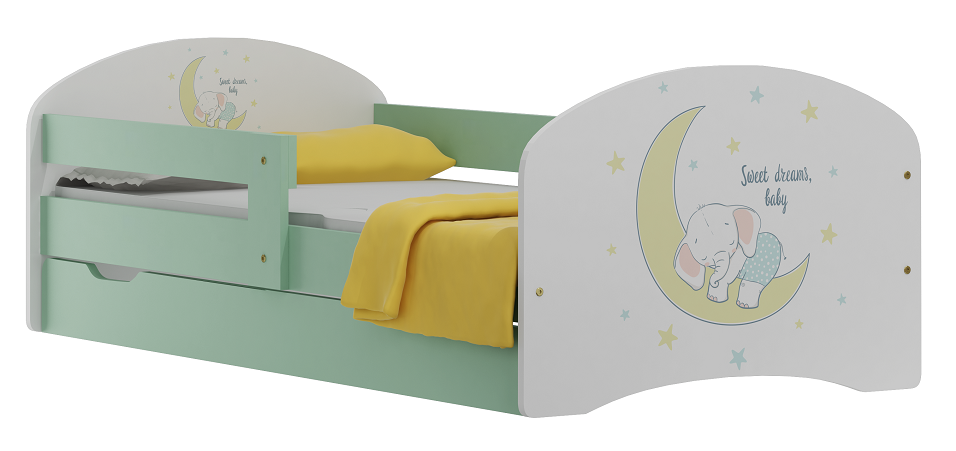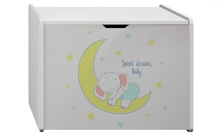 Sladké sny. Toto bude vášmu dieťaťu priať každú noc spiace sloníča z našej kolekcie nábytku do detskej izby. Nechajte vaše dieťa v pokoji spať v izbe s moderným nábytkom a krásnym vzorom spiaceho sloníčaťa na mesiaci s hviezdičkami okolo. Vybrať si môžete celkom z 26 farebných variantov a tak docieliť to, že nábytok bude perfektne pasovať do vašej izby.