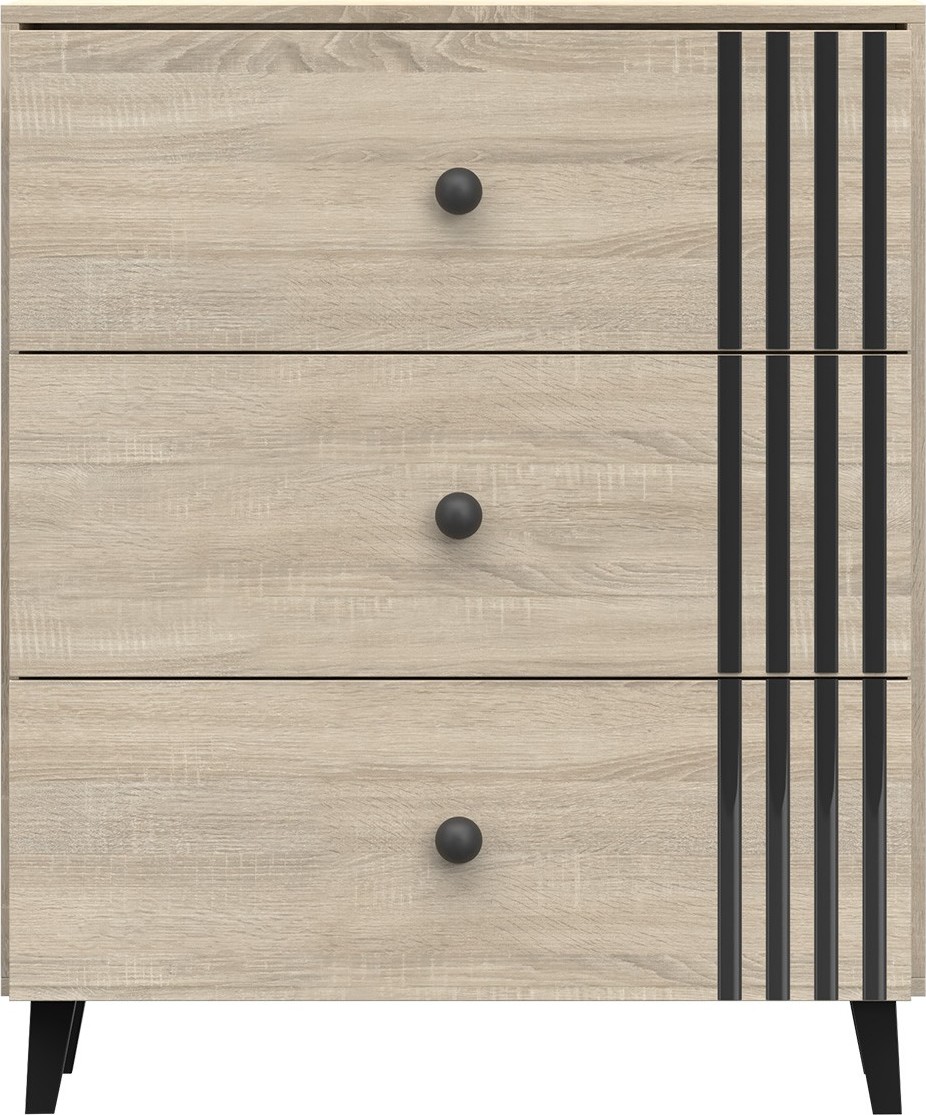 Moderná komoda vyrobená z kvalitnej lamino dosky potiahnutej fóliou ponúkne množstvo úložného priestoru pomocou 3 priestranných šuplíkov uložených na kovových pojazdoch.