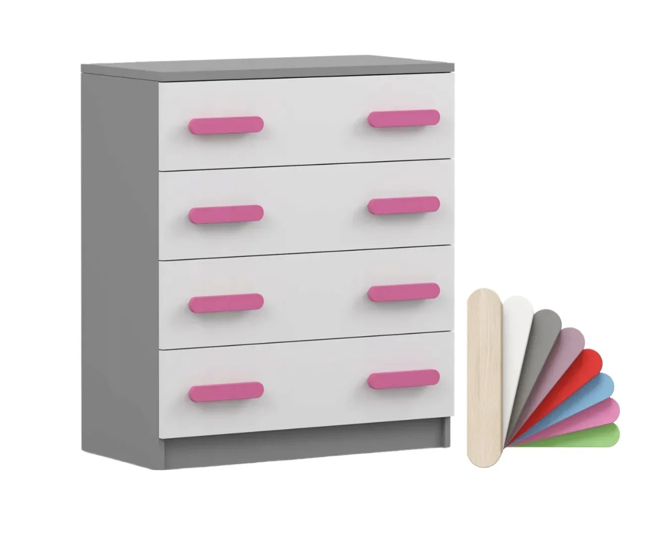 - farba: korpus - šedá, čelá šuplíkov - biela, úchytky - 8 variant