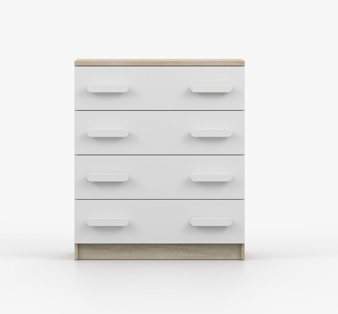 Komoda SMYK je praktický kus nábytku s moderným dizajnom, ktorý sa ľahko začlení do akéhokoľvek interiéru. Štyri priestranné zásuvky s farebnými úchytkami poskytujú dostatok úložného priestoru. Komoda je vyrobená z kvalitnej laminovanej dosky s hrúbkou 16 mm, ktorá je odolná proti poškriabaniu, poškodeniu, vlhkosti a vysokým teplotám. Hrany sú zakončené ABS lištou, čo zaisťuje ich odolnosť a pevnosť.