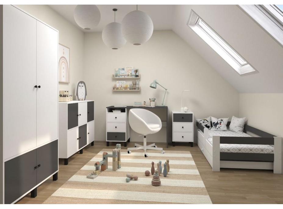 Komoda šuplíková ELEGANT - biela/tmavo šedá