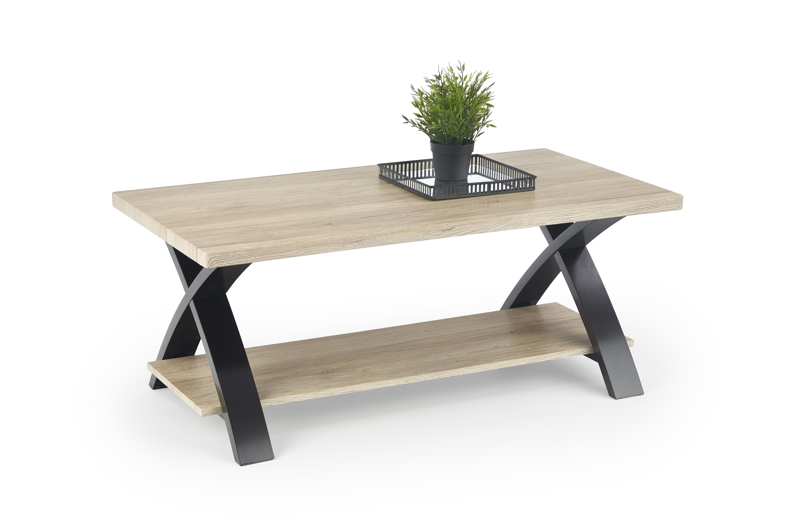 Jednoduchý a elegantný konferenčný stolík v modernom štýle sa hodí do každého interiéru. Tento konferenčný stolík vytvorí dostatočne veľký odkladací priestor pomocou hornej police a poličky pod ňou. Lamino dosky, z ktorých je stolík vyrobený, sú kvalitné, stabilné a dlho vydrží. Kovová základňa dodáva stolíku vysokú pevnosť a industriálny vzhľad.