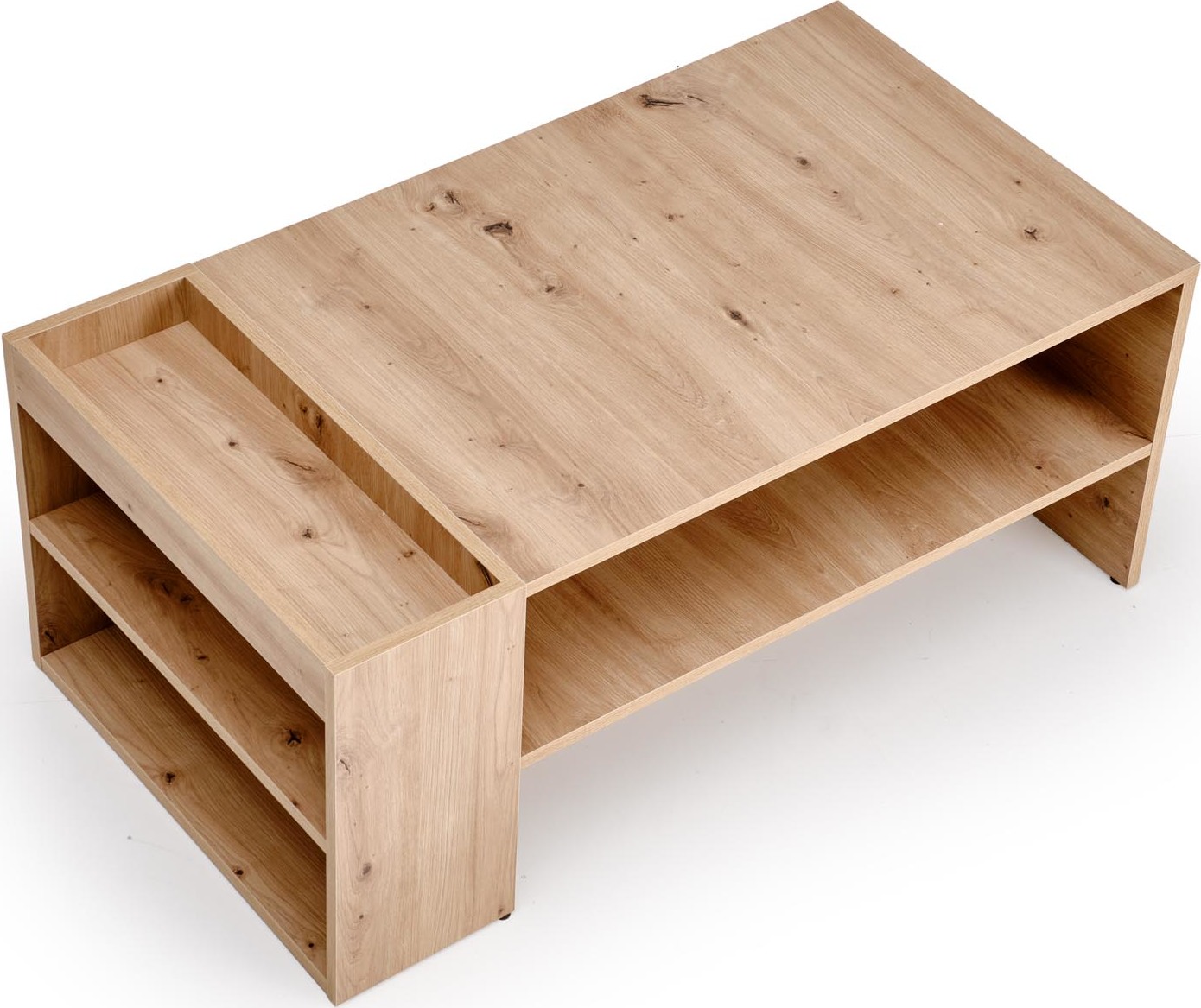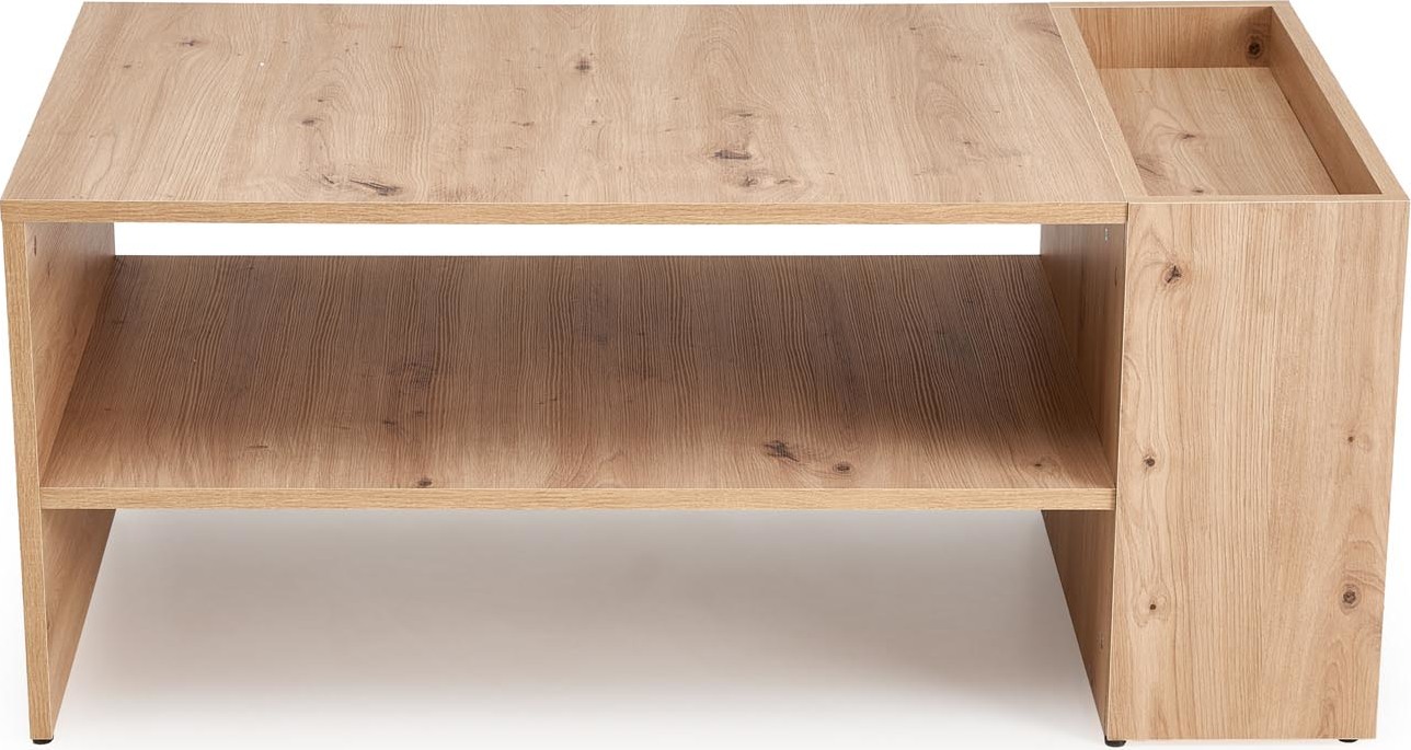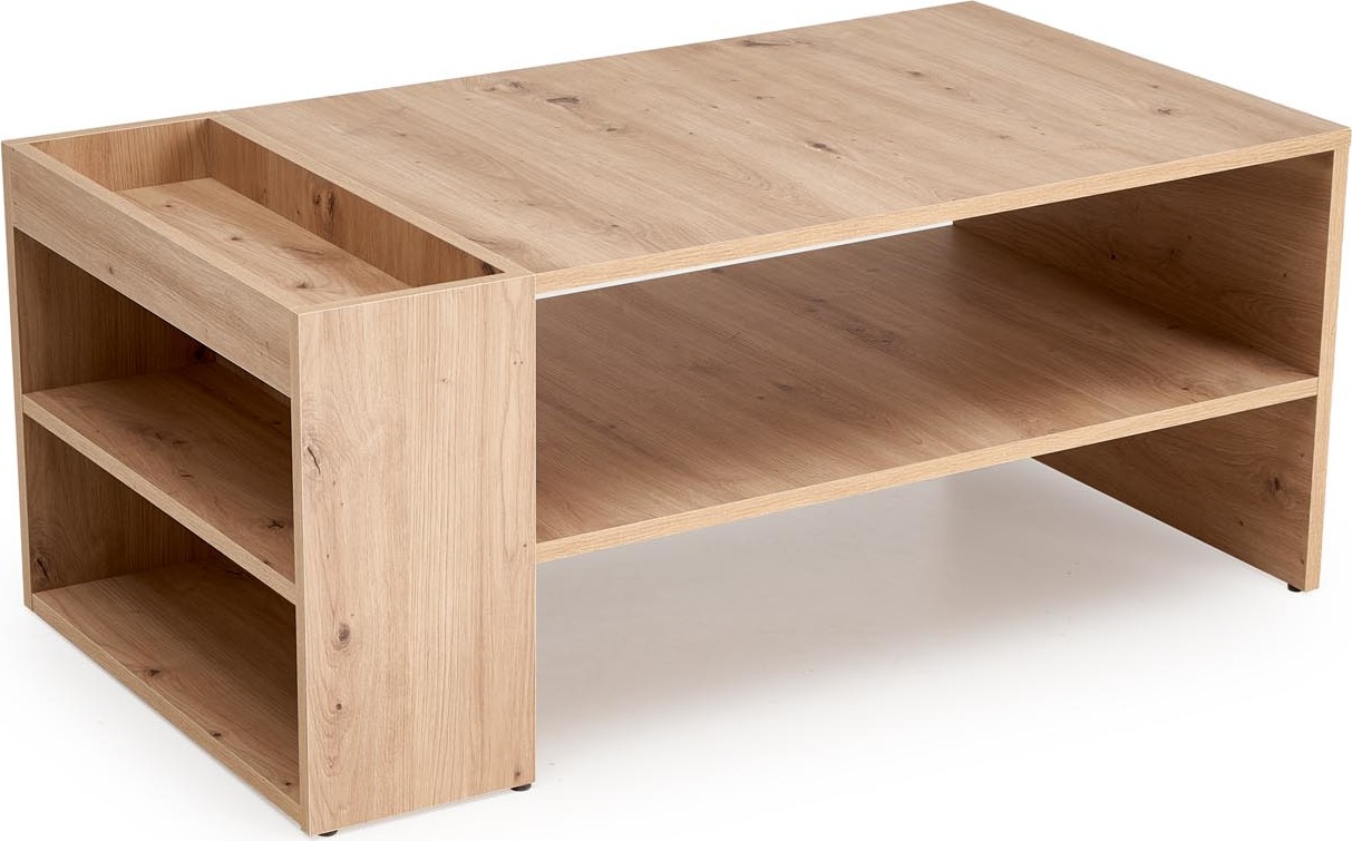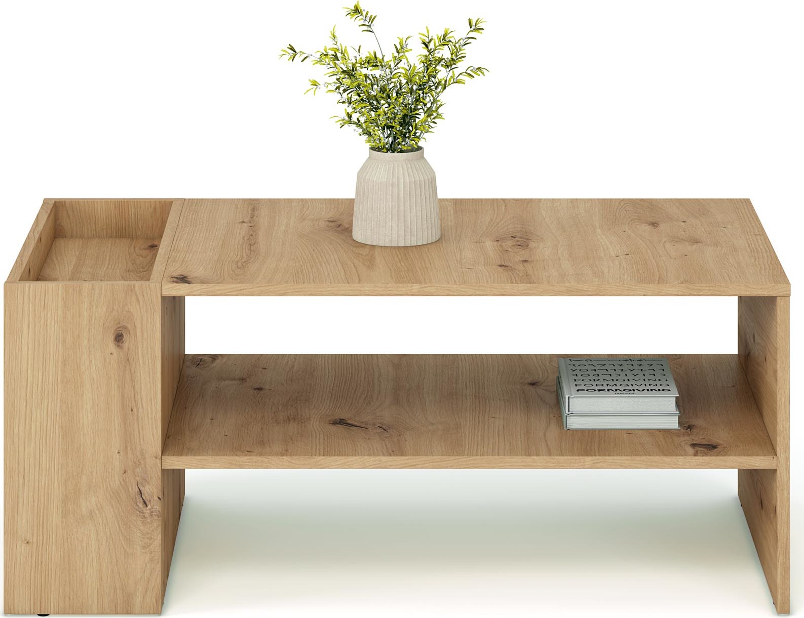 Jednoduchý a elegantný konferenčný stolík v modernom štýle sa hodí do každého interiéru. Tento konferenčný stolík vytvorí dostatočne veľký odkladací priestor. Stolík je vyrobený z laminovanej drevotrieskovej dosky, ktorá zaručuje odolnosť a pevnosť. Okladací priestor je vo forme hornej dosky, police a regálu na jednej strane stolíka.