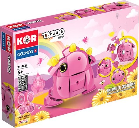 Stavebnica GEOMAG KOR - obsahuje 71 dielikov. Základom je veľká poniklovaná gulička, okolo ktorej voľne rotujú plastové diely obsahujúce magnet a ďalšie komponenty. Stavebnica je vhodná pre deti od 5 rokov. GEOMAG je švajčiarska konštrukčná stavebnica, ktorá umožňuje stavbu najrozmanitejších tvarov, objektov a obrazcov. Základným stavebným prvkom sú magnetické tyčinky s plastovým alebo fosforovým poťahom a poniklované guličky s priemerom 12,7 mm. Ďalšie prvky stavebnice sú základové dosky a deliace plastové panely (výplne). Stavebnice GEOMAG je možné využiť nielen na hranie, ale aj ako atraktívnu učebnú pomôcku v školách. GEOMAG podporuje tvorivosť, predstavivosť, jemnú motoriku a kombinačné schopnosti. Stavebnica GEOMAG je vyrobená so švajčiarskou presnosťou, v súlade s najprísnejšími medzinárodnými kritériami kvality a bezpečnosti, je zdravotne nezávadná a má vynikajúcu odolnosť proti opotrebovaniu. ilustračné video magnetickej stavebnice GeomagVlastnosti